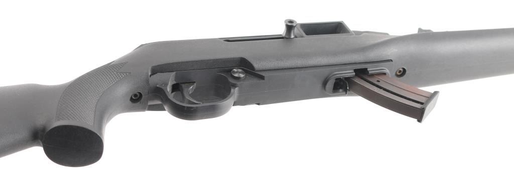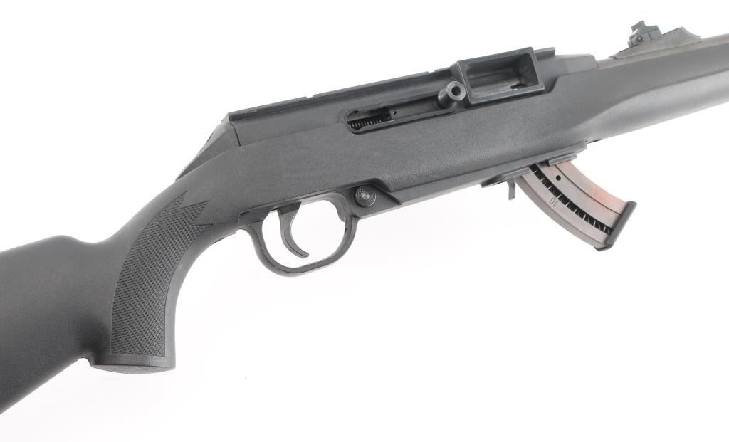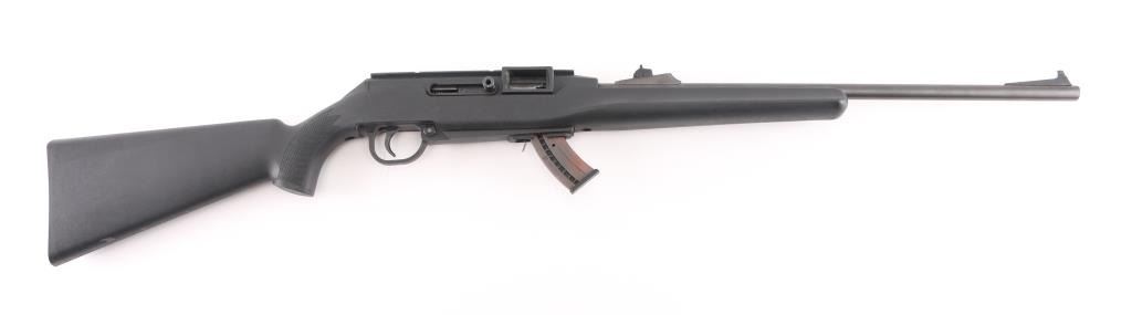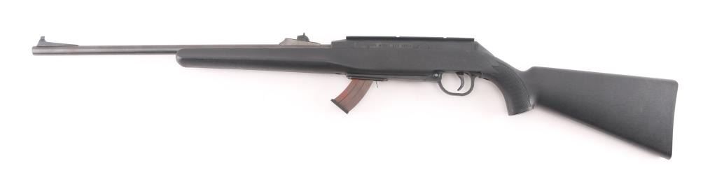 Magazine fed semi automatic sporting rifle chambered in .22 Long Rifle. Features a blued 20" barrel, ramped front bead sight, siding rear adjustable sight. Integral scope rail, 10 round magazine, push button safety, smooth trigger, and black synthetic checkered pistol grip shoulder stock. Rifle is in like new condition, bore is pristine. Comes with spare 10-rd magazine (2) total & manual. NRA Condition-Excellent-Like New. Modern Firearm.