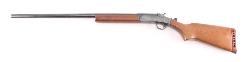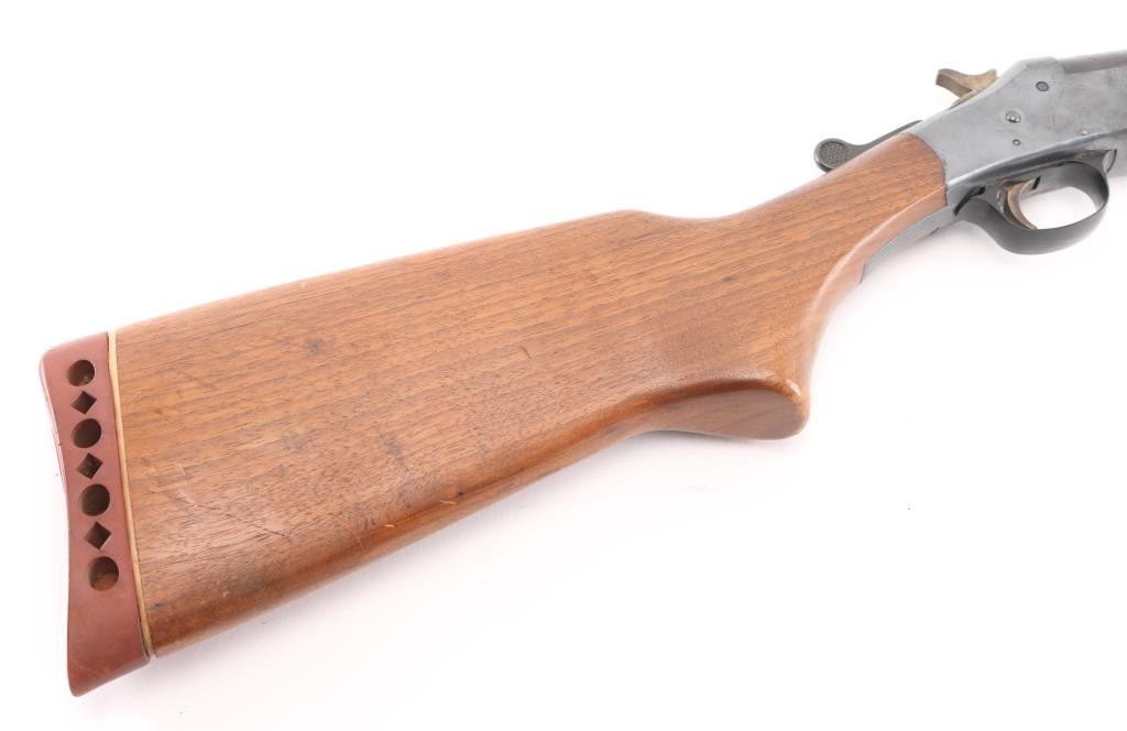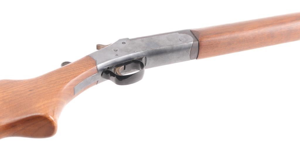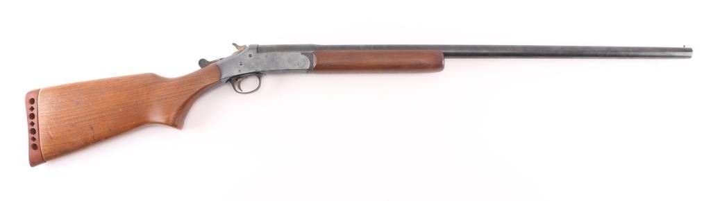 Vintage single shot break open shotgun chambered for 16 gauge shells. Features blued finish, wood stock, factory rubber recoil pad, plastic triggerguard, 28" barrel with fixed Full choke, side throw top lever. Bore is very good condition. Retains 85% blue with minor scratches/rubs, scattered areas of light pin-prick pitting. Wood is in very good condition with minor scratches/ding. Condition is NRA Good. C&R Firearm.