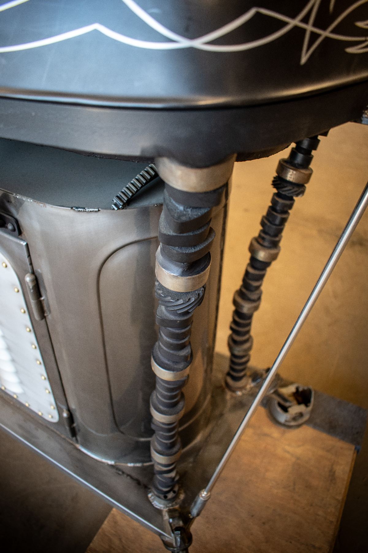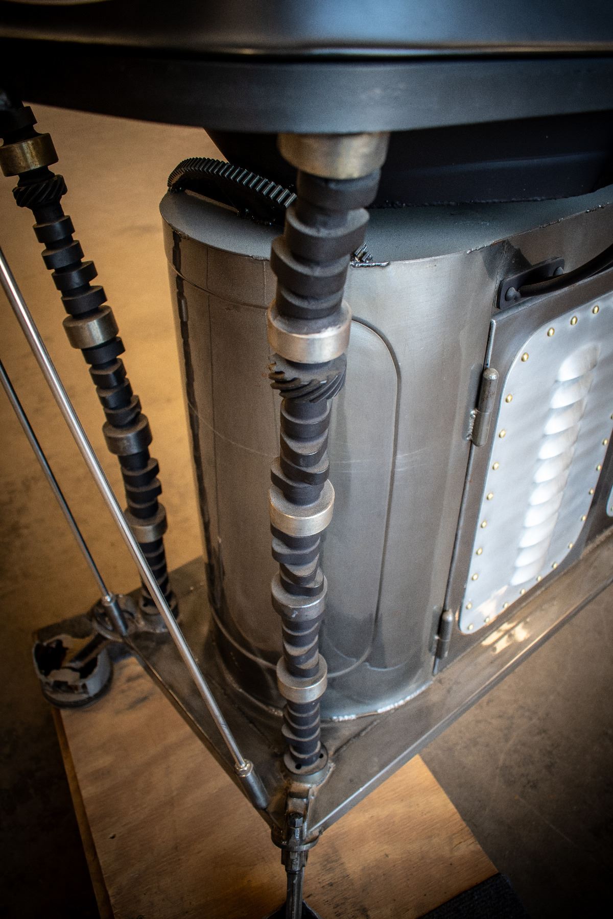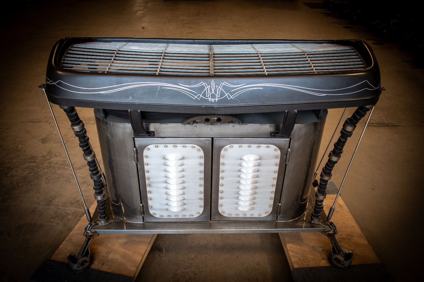 Remember Johnny Cash’s song “One Piece at a Time,” this grill is made of car parts one-piece-at-a-time for a one-of-a-kind BBQ grill. It is a must have conversation piece and serves 2nd duty as a grill.
