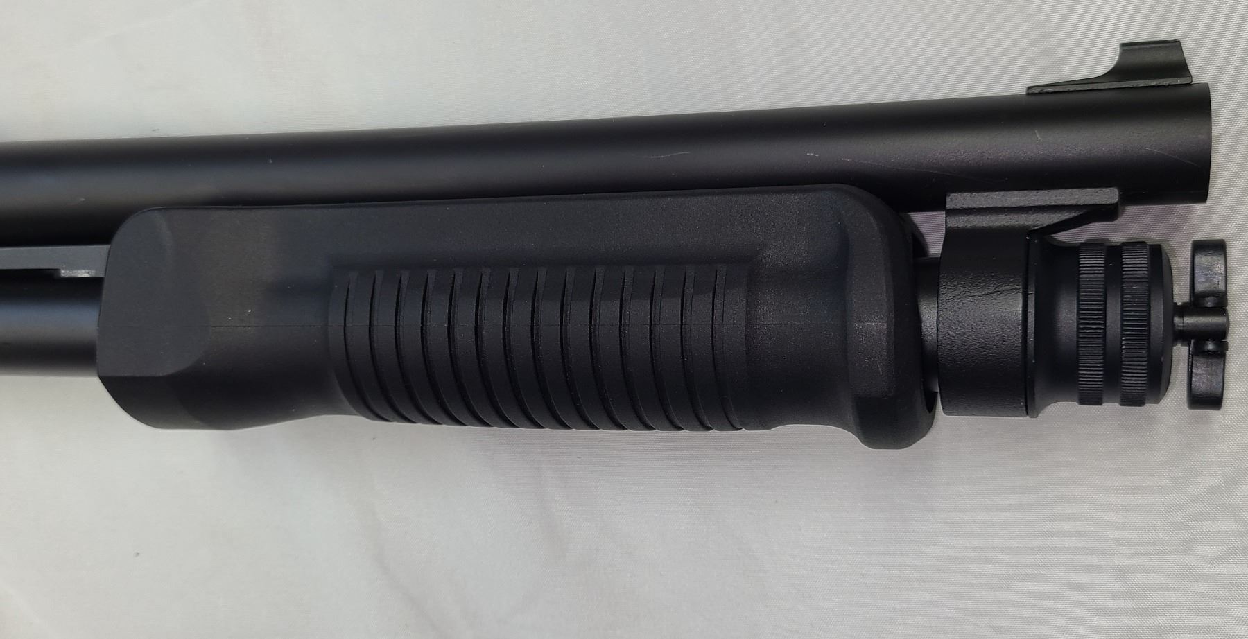 The Churchill 12-Gauge Pump Action Shotgun has front sights. The black synthetic