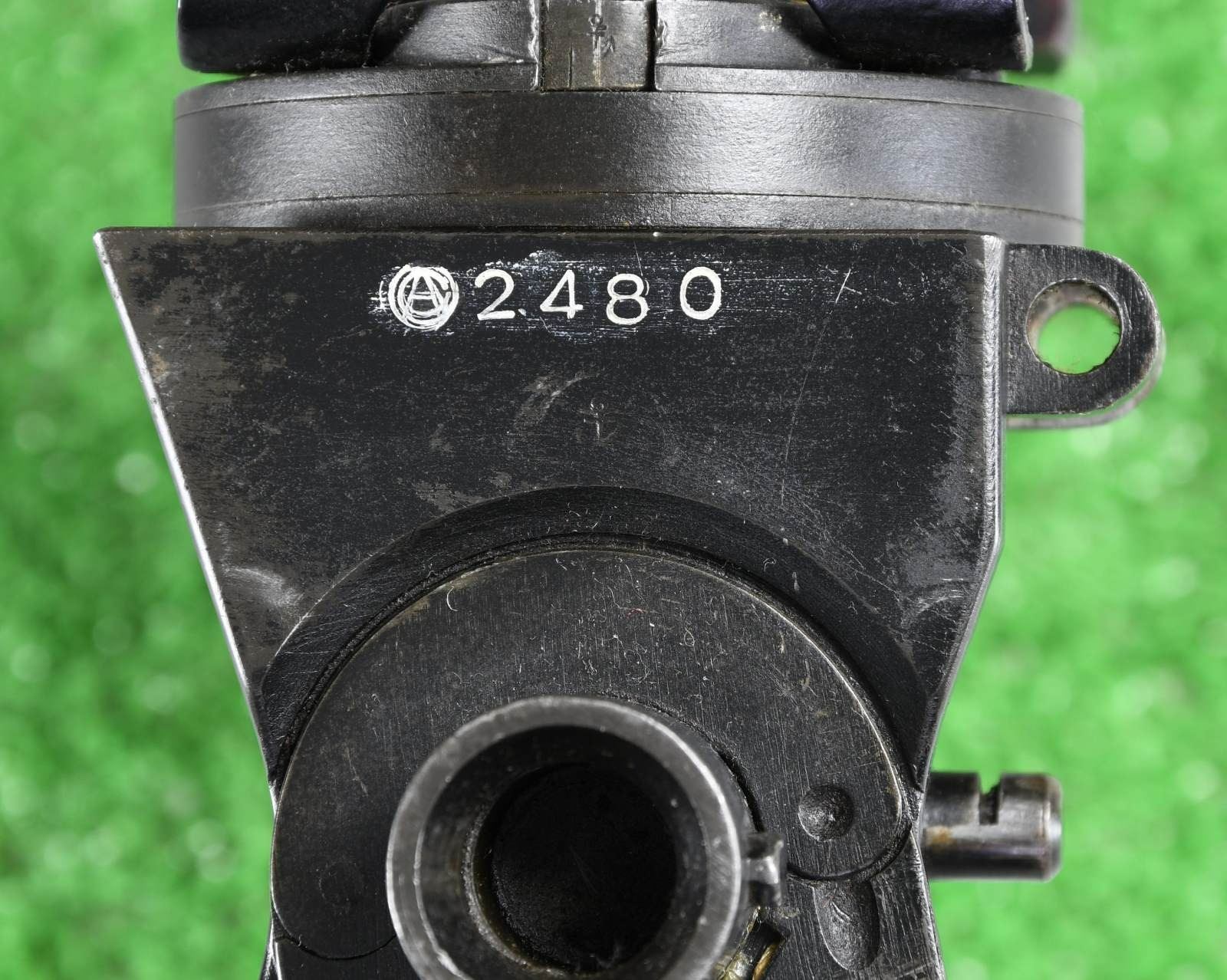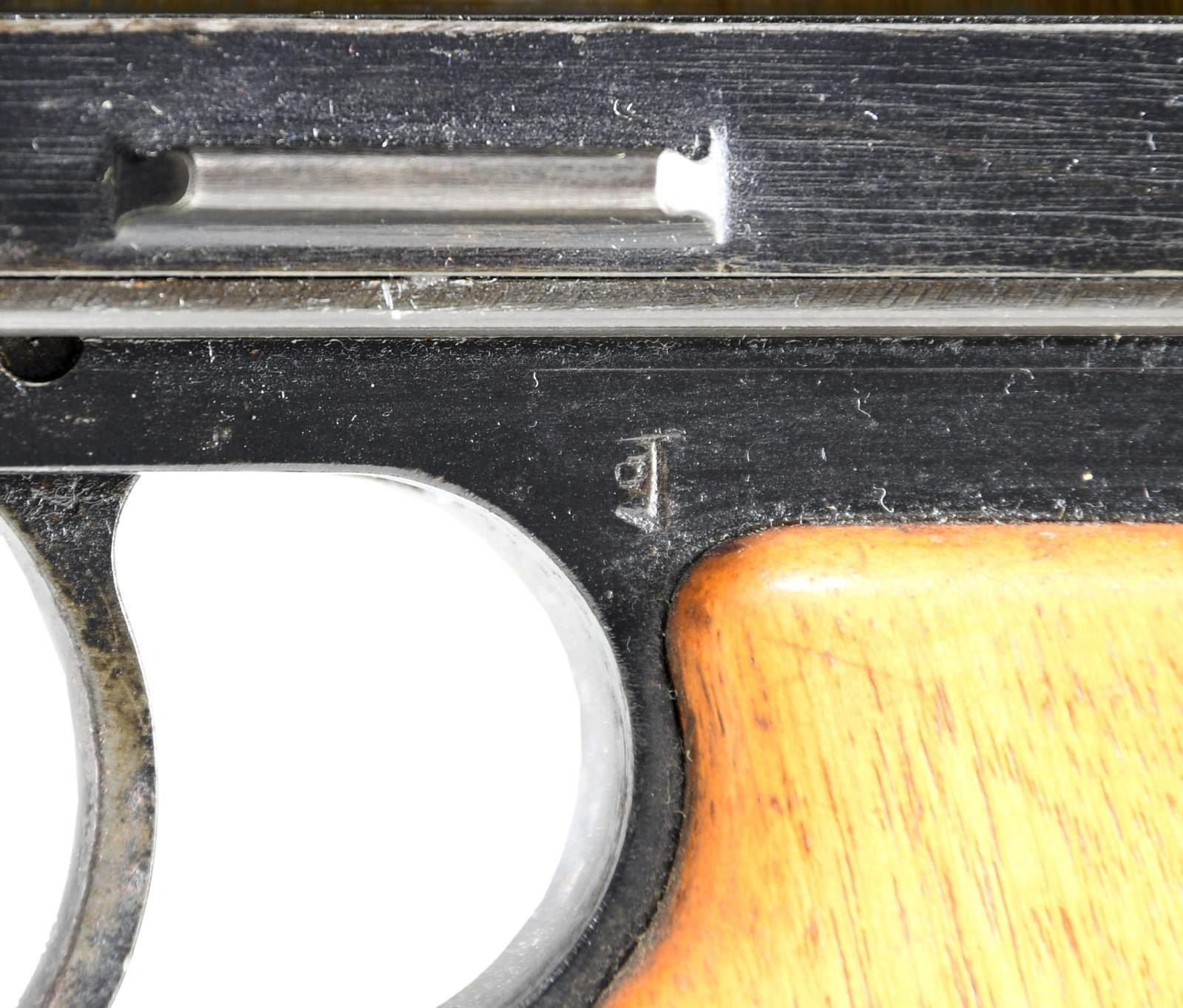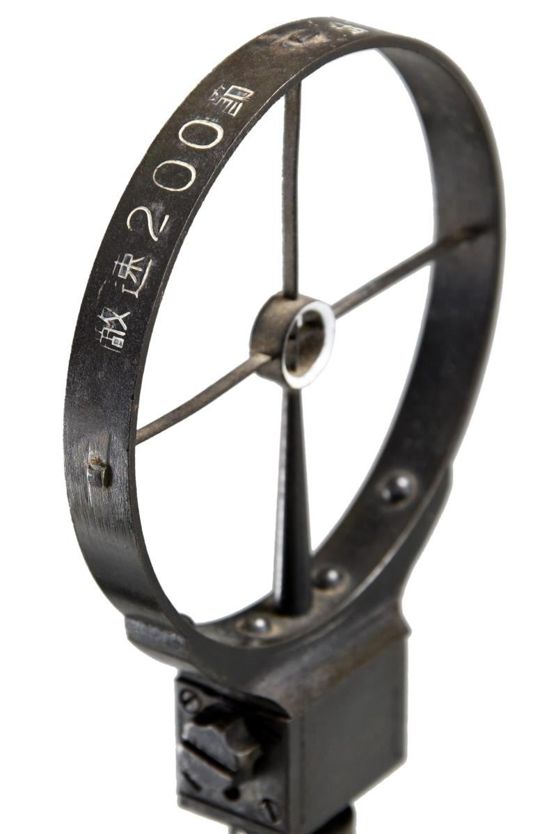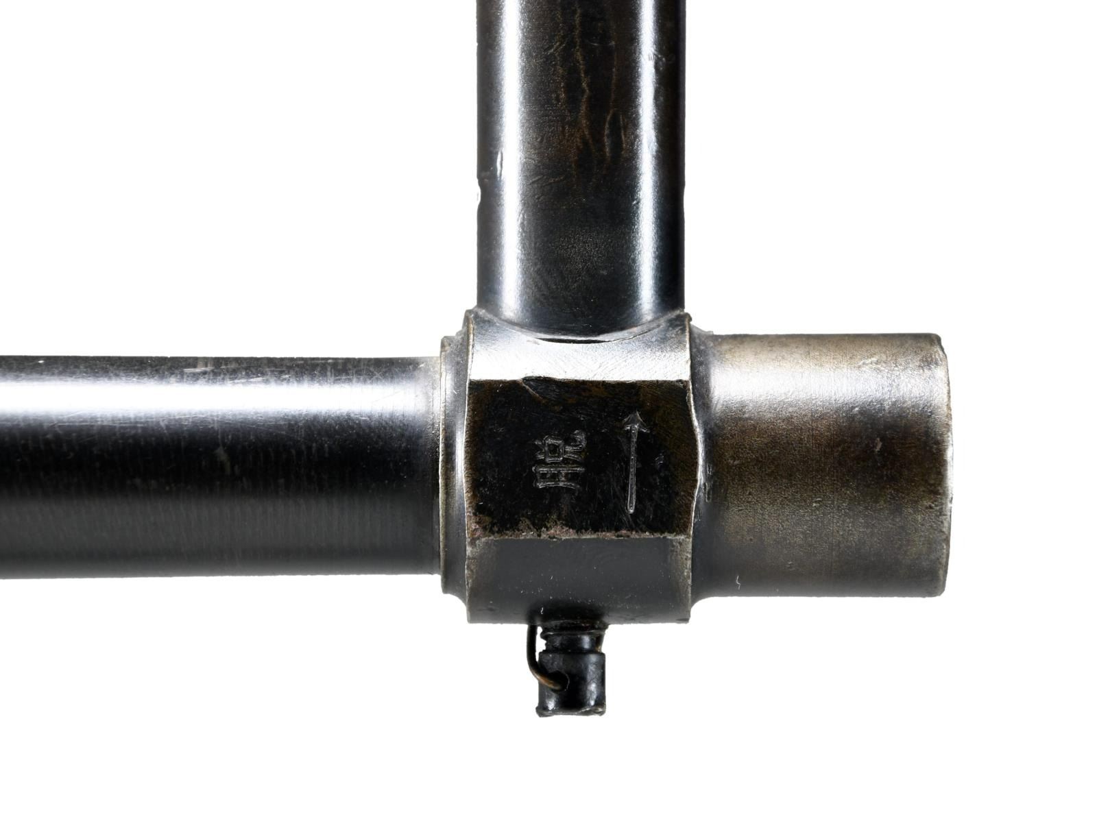 Cal. 7.7mm Rimmed. S# 2480. Bbl. 26". Mfg. 1943. Open bolt, gas operated machine gun, fed from a 97 round pan magazine. First adopted by the Japanese in 1932 & utilized in both the Army & Navy. Originally introduced as the Type 91 Navy Aircraft Machine Gun. When production began in 1932, there was a high percentage of parts that were actually interchangeable w/ the British Lewis Gun. The most obvious difference between the Japanese & the British Lewis is the left side position of the charging handle on the Japanese gun, where it was positioned on the right by the British. It utilizes a leather wrapped single spade grip positioned at the rear of the receiver, which doubles as an oil reserve, hosting a long brush beneath the threaded steel cover. The trigger mechanism is located forward of a single pistol grip located below the action inside an elongated trigger guard. The sights are unique to the aircraft guns, consisting of a rear mounted circle, measuring 3" in diameter w/ a smaller circle in the center & wires running through the center, much like a traditional crosshair. The front sight is a tall post. Unlike many traditional Lewis guns, there is no large, round barrel jacket, or radiator on the Aircraft variant, but just an exposed barrel & gas tube, much like a typical Japanese machine gun. The finish on all exposed metal parts is a dark black mixed w/ traditional bluing. Several Japanese markings on barrel shroud & receiver, highlighted in white and easy to read, not so easy to translate. Some receiver markings, below top mounted drum translated to; "AIKAWA NAVY ENGINEERING EDITION / TYPE92 7.7 / SWOWA YEAR 18". Other markings include an anchor below serial number. MAGS: 1 steel 97 rd. pan. UNATTACHED ACCESSORIED: Small pedestal mounted on 6"x6" board for display. CONDITION: Finish is complete & consistent. w/ remarkable coverage. Markings are all clear, most highlighted white, and easy to read. Pan magazine appears equally clean. Barrel is slugged w/ steel rod, though dewat process appears to have been done meticulously so as not to affect other internals. Fire control mechanism appears to function smoothly & correctly when cycled by hand. NATIONAL FIREARMS ACT DEWAT MG REQUIRING BATF TRANSFER BEFORE TAKING POSSESSION. FULLY TRANSFERABLE.(03-1631/JZ). CURIO CLASS III. $8,000-12,000.