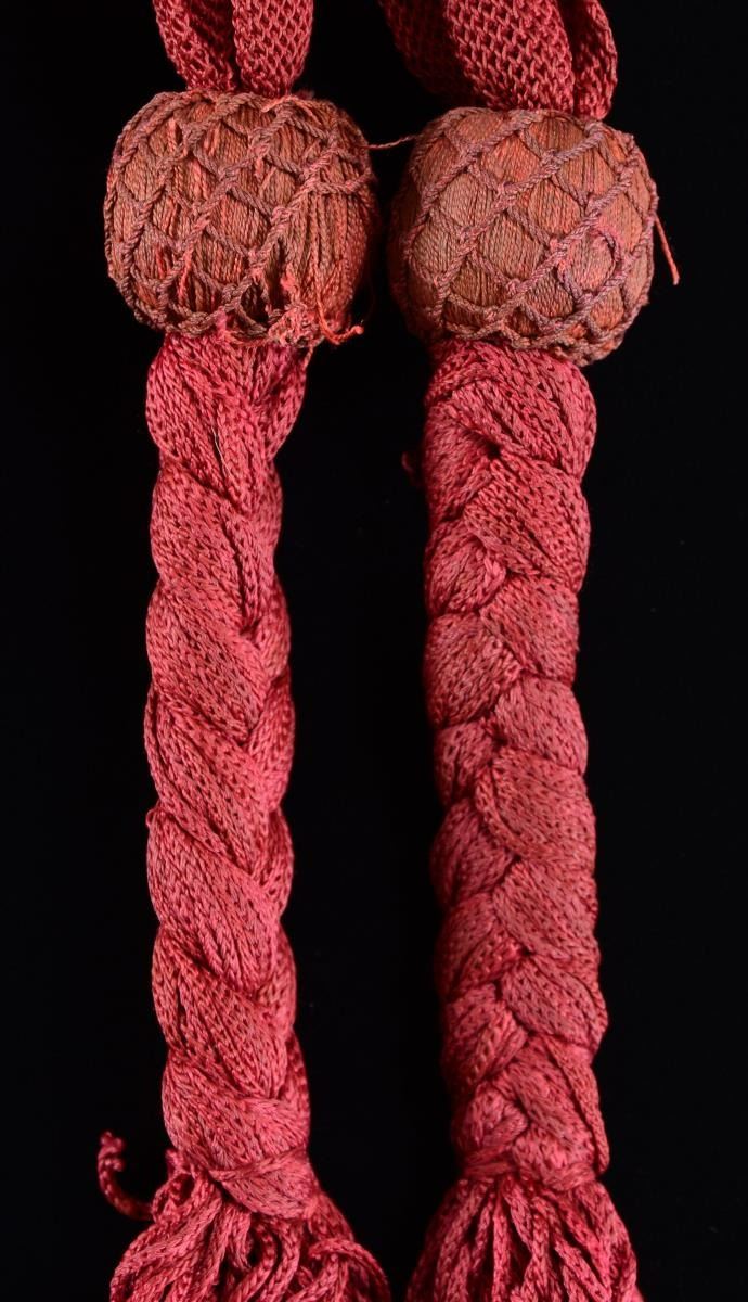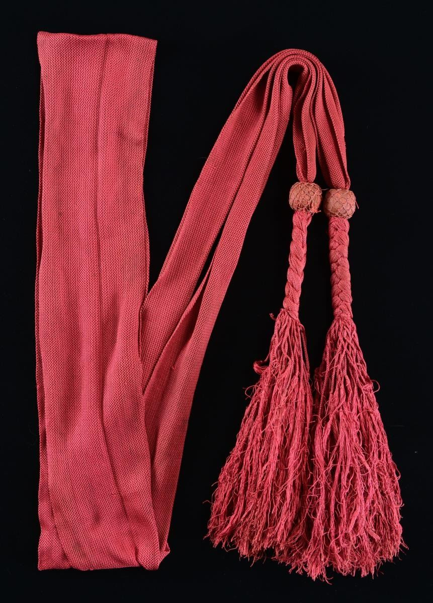 SEARCY SHARPSHOOTERS, 16TH MISSOURI INFANTRY. 104" x 4.5". Paper files included with this lot include a statement by Russel B. Caples stating "APRIL of 1865 a tough remnant of our old regiment fought under General Kirby Smith….Returning home to Glasgow, I kept my sash and the flag under which I had fought so many battles. Mother had died and father [Confederate chaplain] was mortally wounded by a cannon shell during the battle of Glasgow [October 15, 1864]. I arrived home with no job and two half sisters to support." Russell Bigelow Caples (1841-1915) entered service as private in Searcy Sharpshooters in 1862 was promoted to Lieutenant serving till June 7, 1865 when he was given his parole of honor at Shreveport, Louisiana. The Searcy Sharpshooter's served in western theatre under Generals Earl Van Dorn & Sterling Price. Upon his return home finding such devastation, he turned to law, becoming attorney and later well-respected judge till his death in 1915. The red silk officer's sash is finely preserved and unusual construction with long braided knots and fringe, so different from Union counterpart in construction. The handful of identified western theater Confederate officer's sashes often show unique construction details such as the 3.5" long braided area below knot before fringe on Lt. Caples sash offered here. Identified confederate sashes are very scarce, and this is a fine example. CONDITION: very good overall, good color, one round knot has fraying of its net cover. (02-21024-2/JS). $1,500-2,500.
