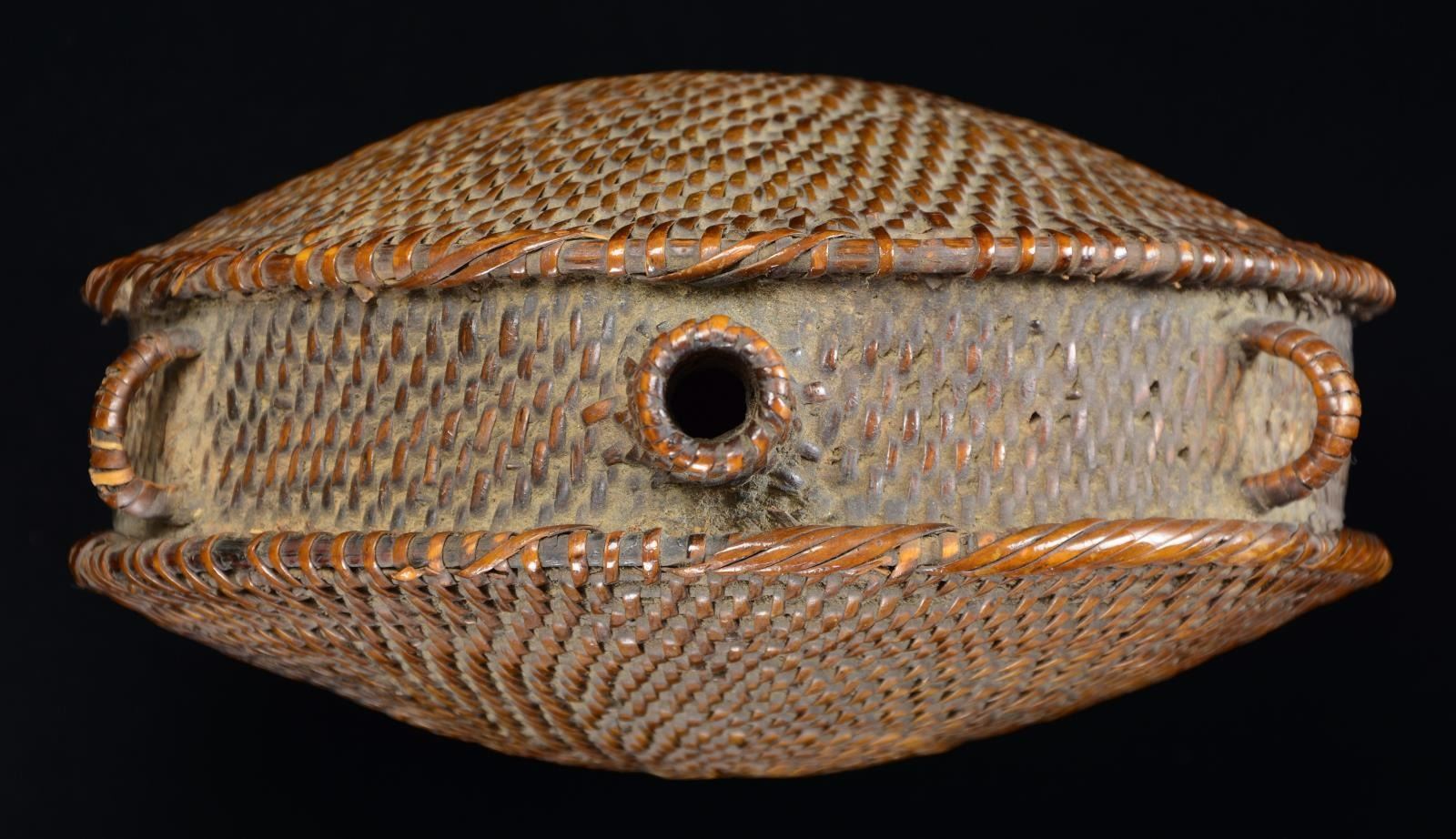 Lot 3226 MID-19th CENTURY WOVEN WICKER OR GRASS CANTEEN.