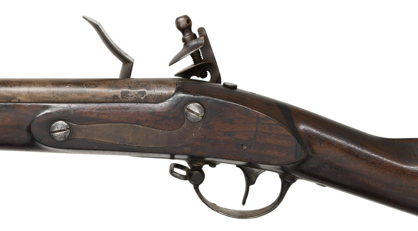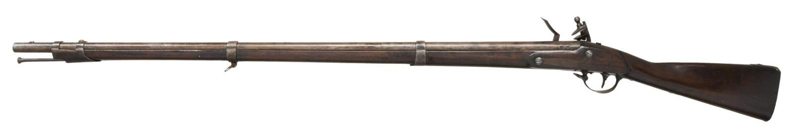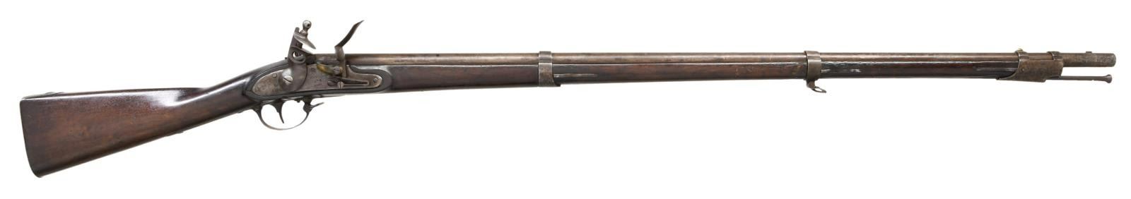 PENNSYLVANIA. Cal. 69. NSN. Bbl. 42". This musket was produced by W.L. Evans of Evansburg, Pennsylvania in the early 1830s. Round barrel with rectangular lug/sight at the top near the muzzle. The barrel is marked "LS P US" near the bolster. The barrel tang is marked "1830". The lock is marked in front of the cock "W.L. EVANS (eagle) V. FORGE". To the rear of the cock are the markings "1830 US". Iron trigger guard, "US" marked butt plate, side plate, barrel bands, sling swivels, and ramrod. The front double barrel band has a brass bladed sight on the top. Walnut stock. CONDITION: although well done, there is no doubt this is a reconversion. The barrel and all other iron parts have a mottled, medium gray/brown patina. The lock holds both full & half cock. Wood is quite sound with no notable damage. There is a small spatter of black paint near the wrist. Fair, dirty bore. (01-24102/BF). ANTIQUE. $900-1,300.