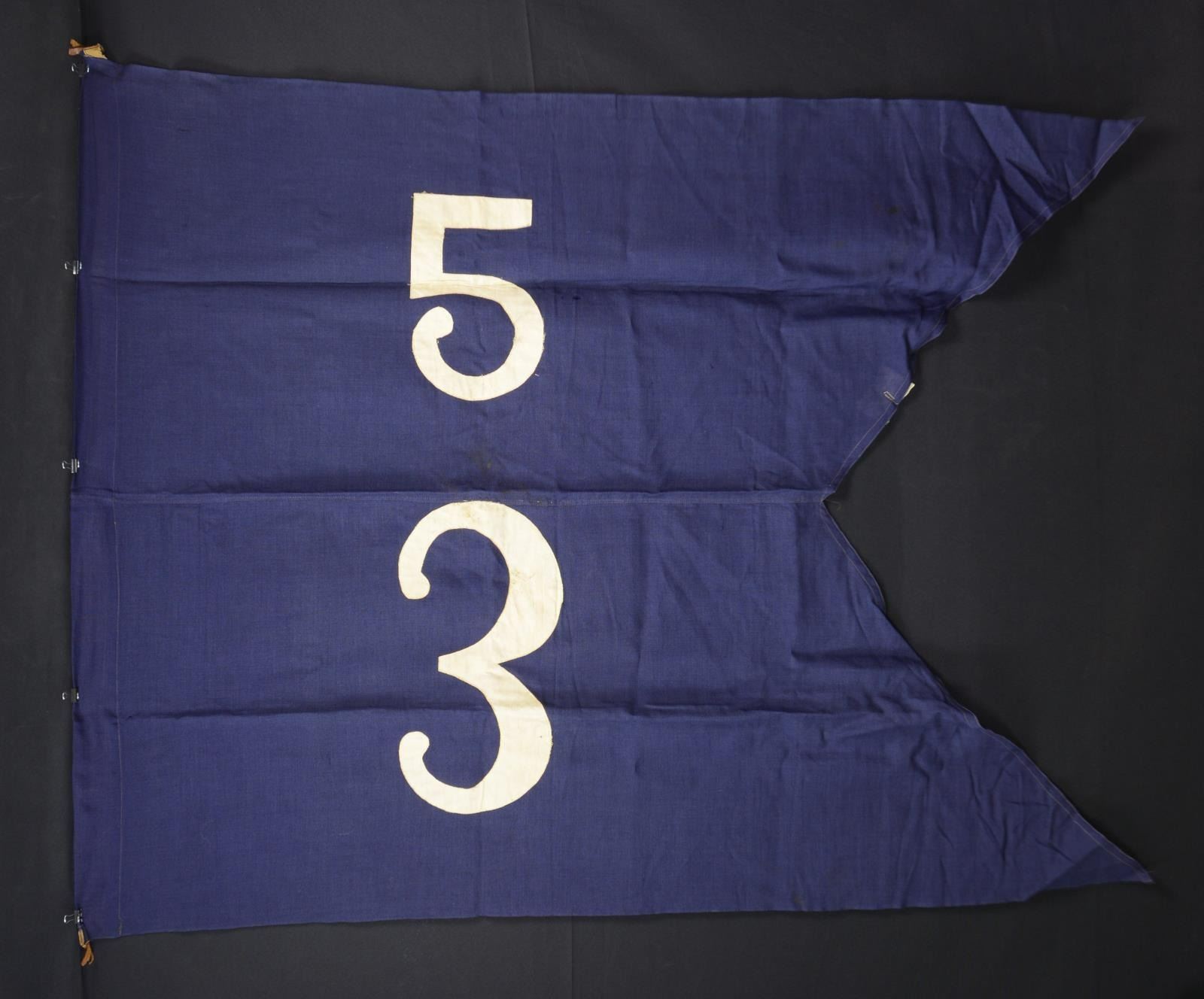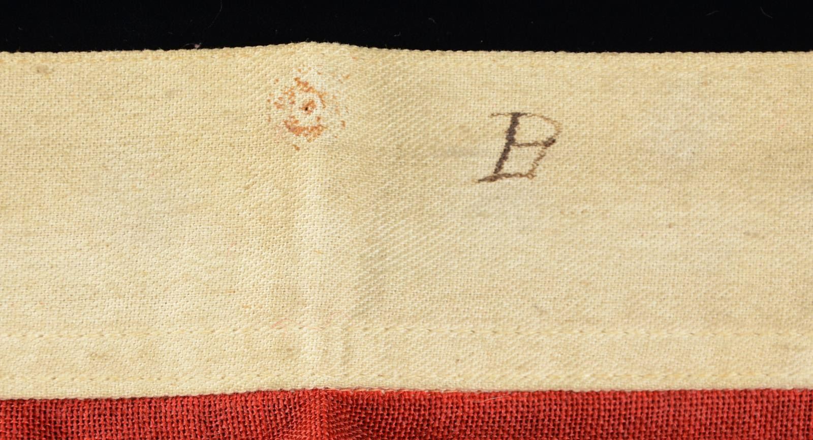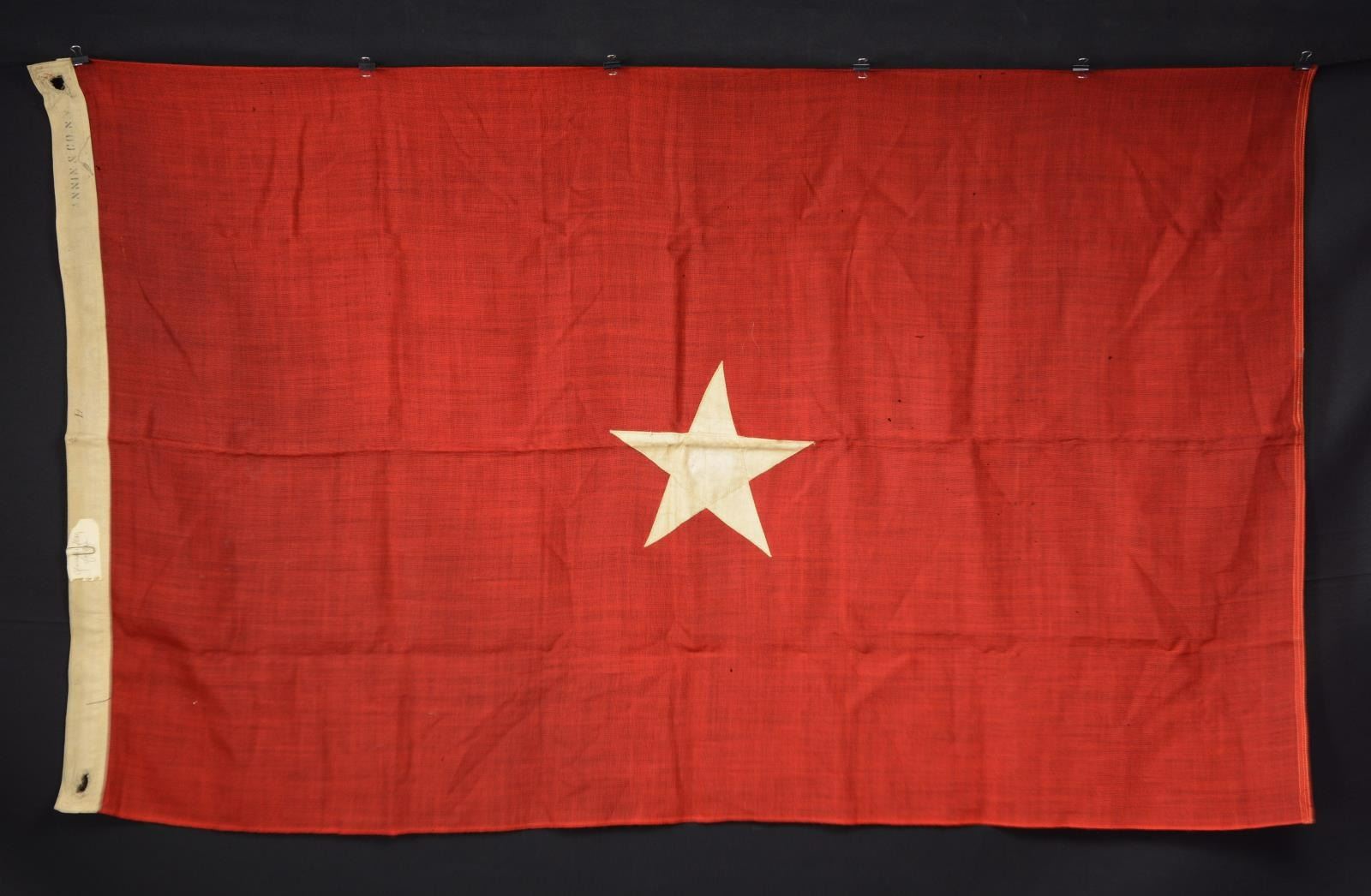 FLAGS. 4' x 5' infantry field guidon, 3rd Division, 5th Infantry Brigade, Philadelphia QM depot Nov. 6, 1918 dated label. General Sladen commanded this unit through WW1. 3' x 4' regulation Brigadier General's flag, white star on red bunting field. CONDITION: good to very good, light mothing on bunting. (02-17895-14/JS). $500-1,000.