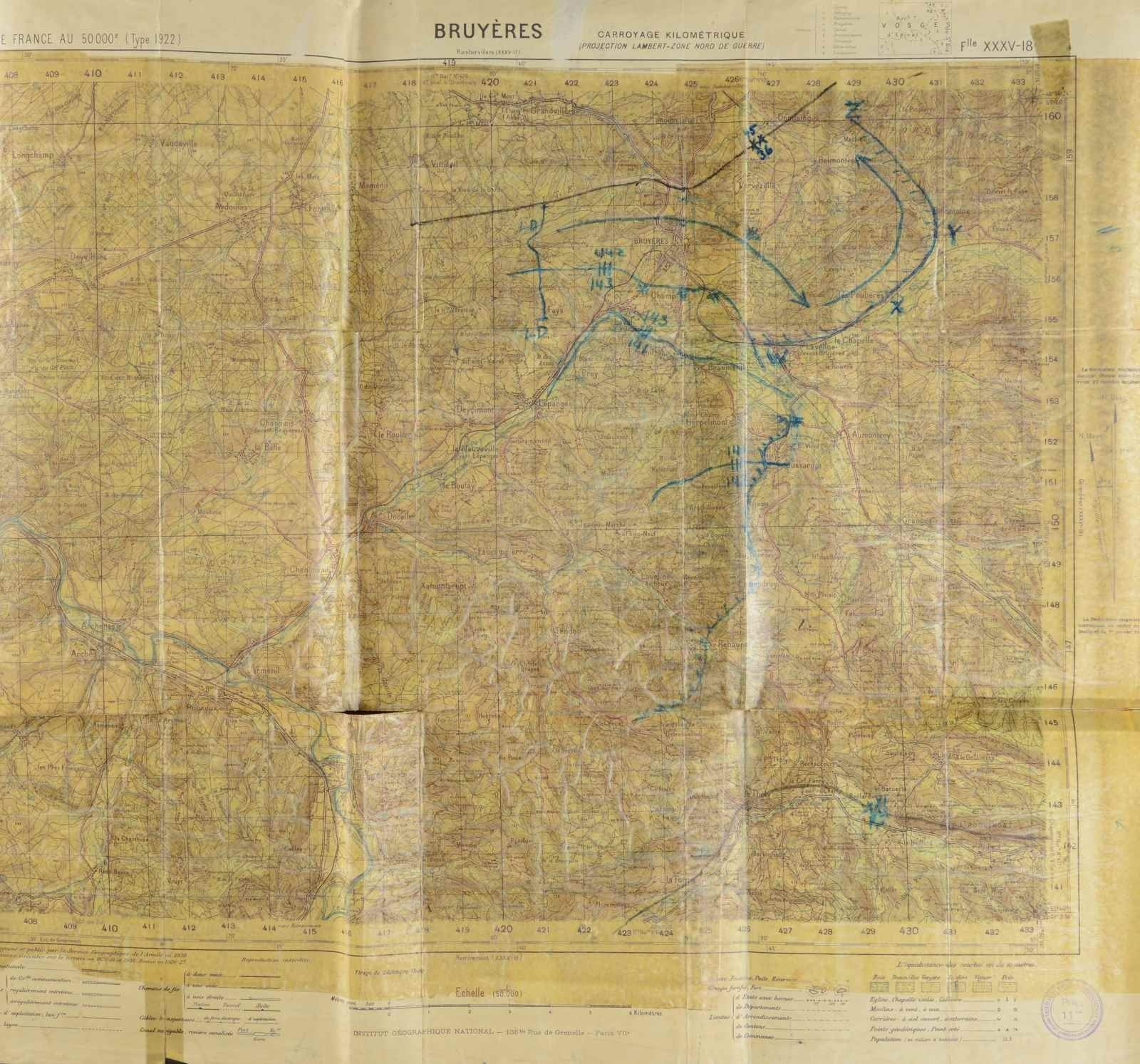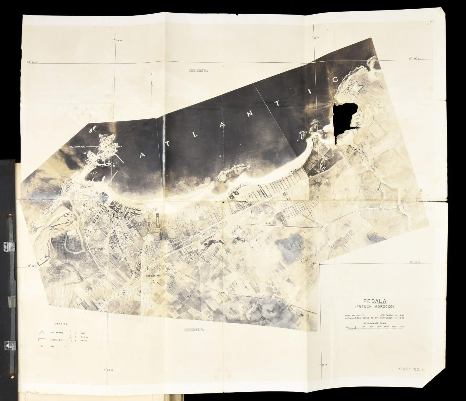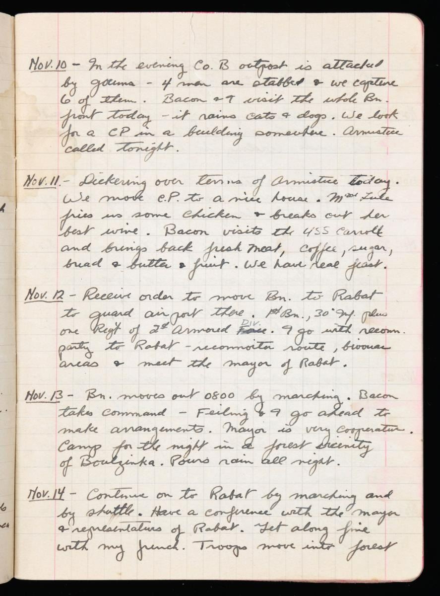 MEDALS & ARCHIVE. Brigadier General Fred Sladen, Jr. (1906-1980) Fred "Jim" W. Sladen Jr was captain in 36th regiment Infantry during WW2. He participated in five of the six major amphibious landings in Africa, France, and Italy. He served as Commanding Officer, 1st Battalion, 36th Regiment during North African landing at Fedala, Morocco and was instrumental in the success of the 36th Division landing in Southern France, later landing at Messina, Sicily, then as Executive Officer of the regiment from Salerno to Anzio. His French language skills resulted in his assignment as Chief of the Allied Liaison Section with the 2d French Moroccan Division in December 1943. He was selected as G3, 36th Infantry Division, from March to November 1944. His medals & awards are framed. Purple Heart (#204601) Army Commendation Medal, inscribed "Fred W. Sladen, Jr" Ribbon French Croix de Guerre with star Italian Cruce de Valore American Defense Medal with "FOREIGN SERVICE" clasp EUROPEAN, AFRICAN, MIDDLE EASTERN campaign medal with silver star, 3 bronze stars, and arrowhead American Campaign Medal World War 2 Victory Medal Occupation Medal with GERMANY clasp American Defense medal Order of Military Merit (South Korea) WW2 archive includes November 8, 1942 to April 10, 1943 day by day diary of North African invasion & March 18-November 26, 1944 day by day diary of Italian campaign, 20 maps of North Africa, Italy, & France he used, some annotated. There are several "SECRET" and "RESTRICTED" documents 1942-1944 concerning operations he participated in. Also included in this lot are his sister Elizabeth M. Sladen's framed WW2 medals, WW2 Victory medal, American Campaign Medal, and Good Conduct Medal along with her nurse's cap. CONDITION: good to very good overall, some documents and maps have reductions & staining as expected from field use. (02-17895-20/JS). $2,000-3,000.