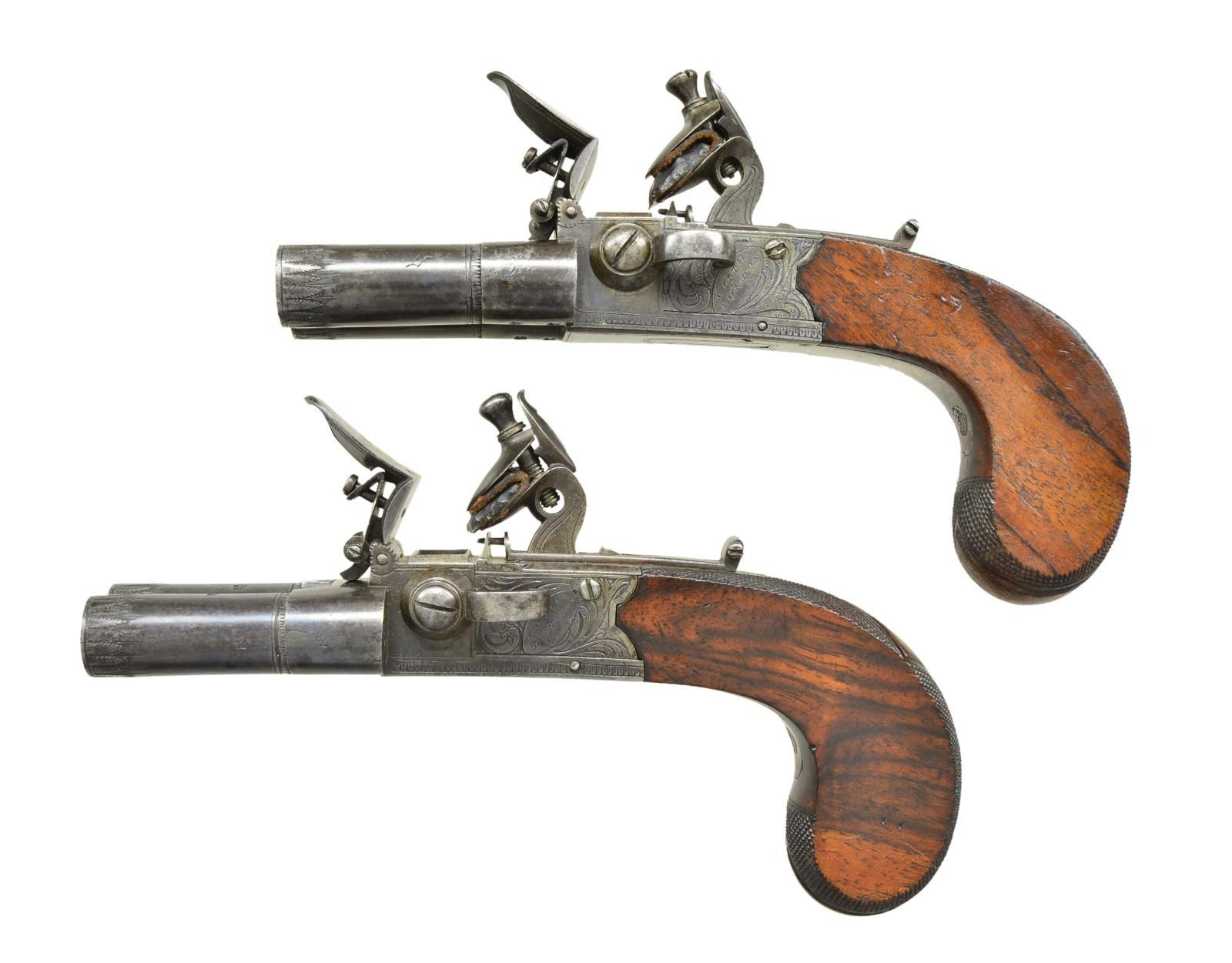 Lot 3609 GOOD PAIR OF SXS SCREW BARREL FLINTLOCK POCKET