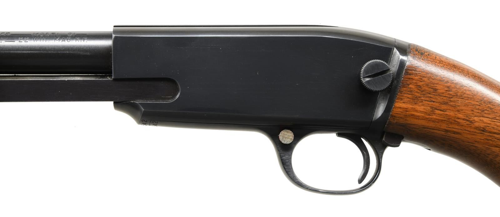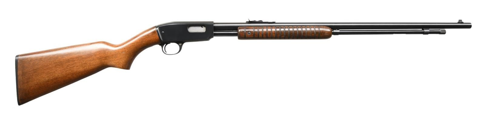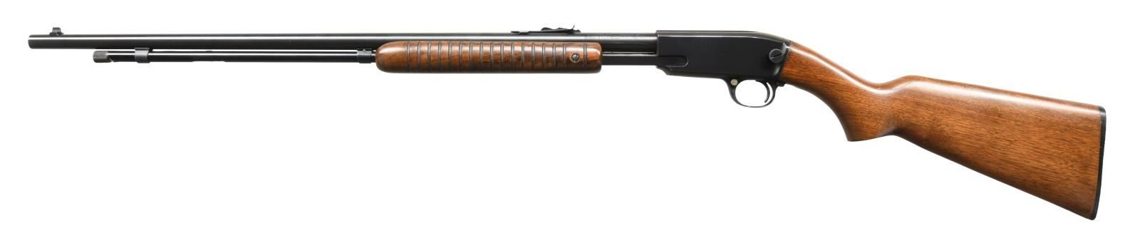 Cal. 22 Mag. S# 284542. Bbl. 24" w/ factory sights; silver bead front & elevator adjustable rear. Mfg. 1959-1961 w/ grooved receiver. CONDITION: some very light handling marks on buttstock; balance near excellent, including bore. PROVENANCE: The Collection of Gun Sport Ltd. owned by Jon R. Thomas. (23-3554/NW). CURIO. $1,500-2,000.