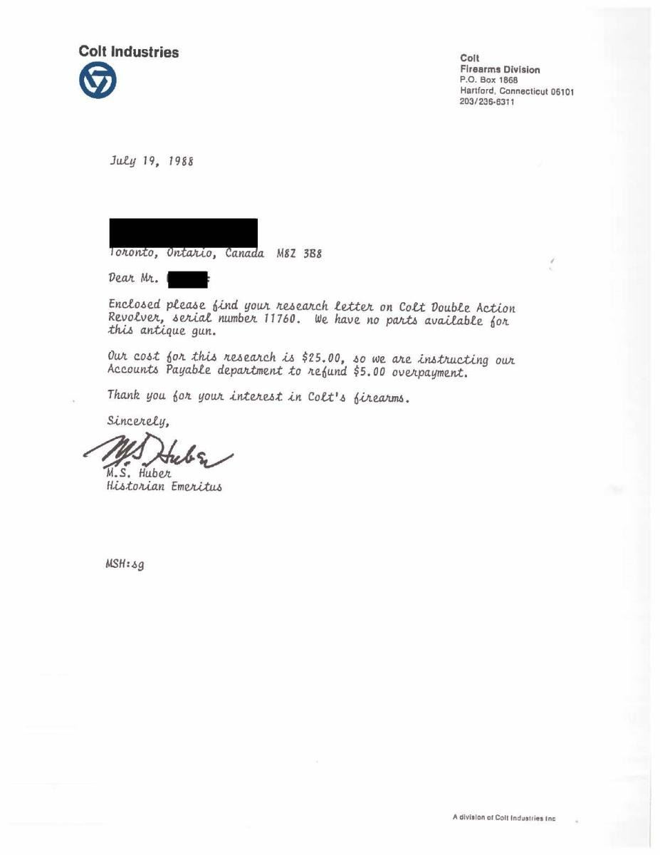 Lot 4310 COLT 1878 FRONTIER CANADIAN MILITARY DOCUMENTED