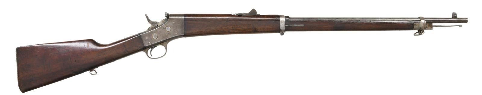 Cal. 7mm Mauser. NSN. Bbl. 30". Blade front sight. Ladder rear sight graduated to 2100yds. Ilion made example w/ last patent date of Oct. 22nd, 1901. Walnut stock set w/ bottom mounted sling swivels. Cleaning rod present. CONDITION: stock set has added oil finish w/ a small crack on handguard ahead of front sight, scattered dings, handling wear & flaking oil. Metal is mostly a gray patina w/ a few dings & scattered oxidation. Bore has worn rifling w/ scattered frosting. PROVENANCE: From the Lifelong Collection of Glen E. Mattox. (23-5008/MJC). CURIO. $600-800.