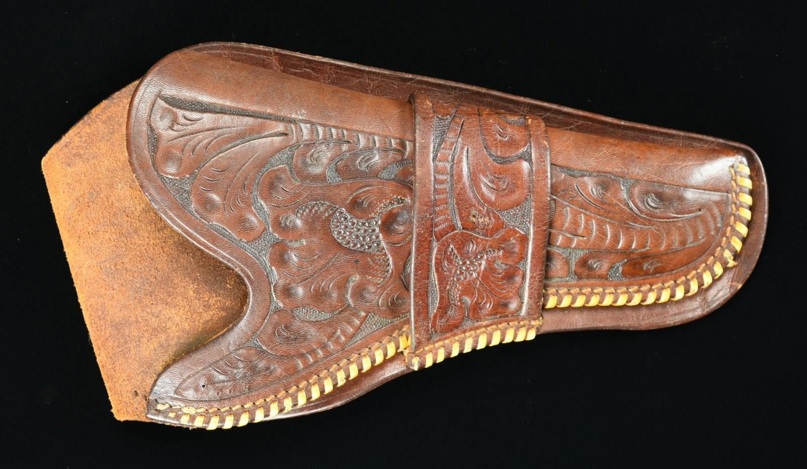 Lot 4562 SINGLE LOOP FLORAL CARVED 4 3/4" SAA HOLSTER.