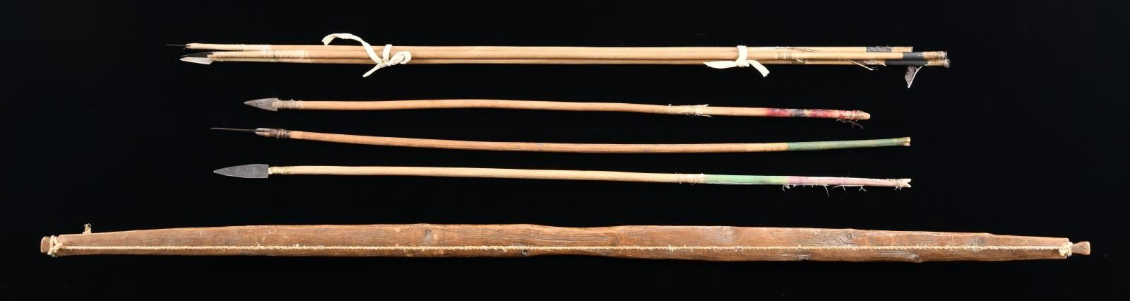 Lot 4607 NATIVE AMERICAN BOW AND SIX IRON TIPPED ARROWS.
