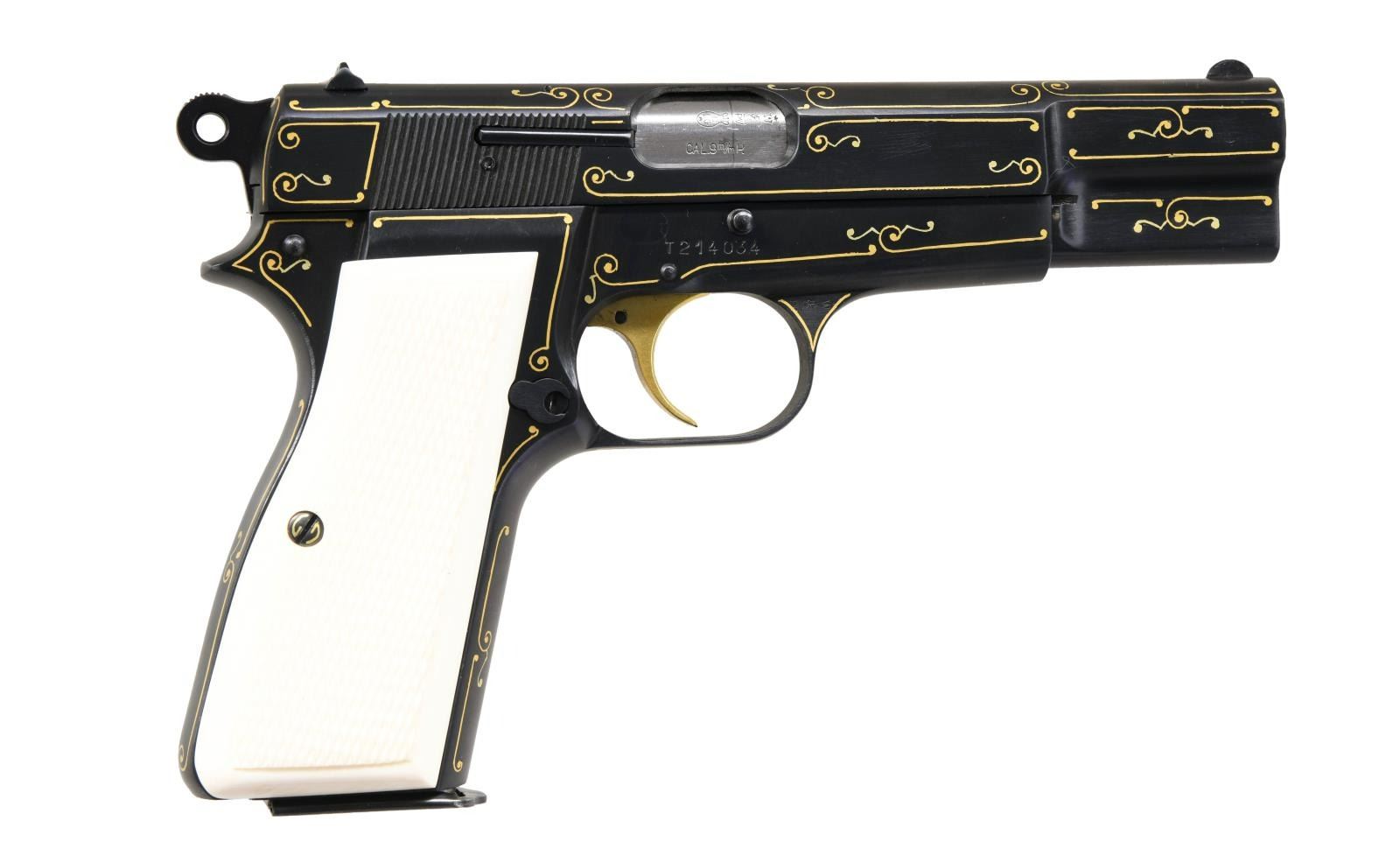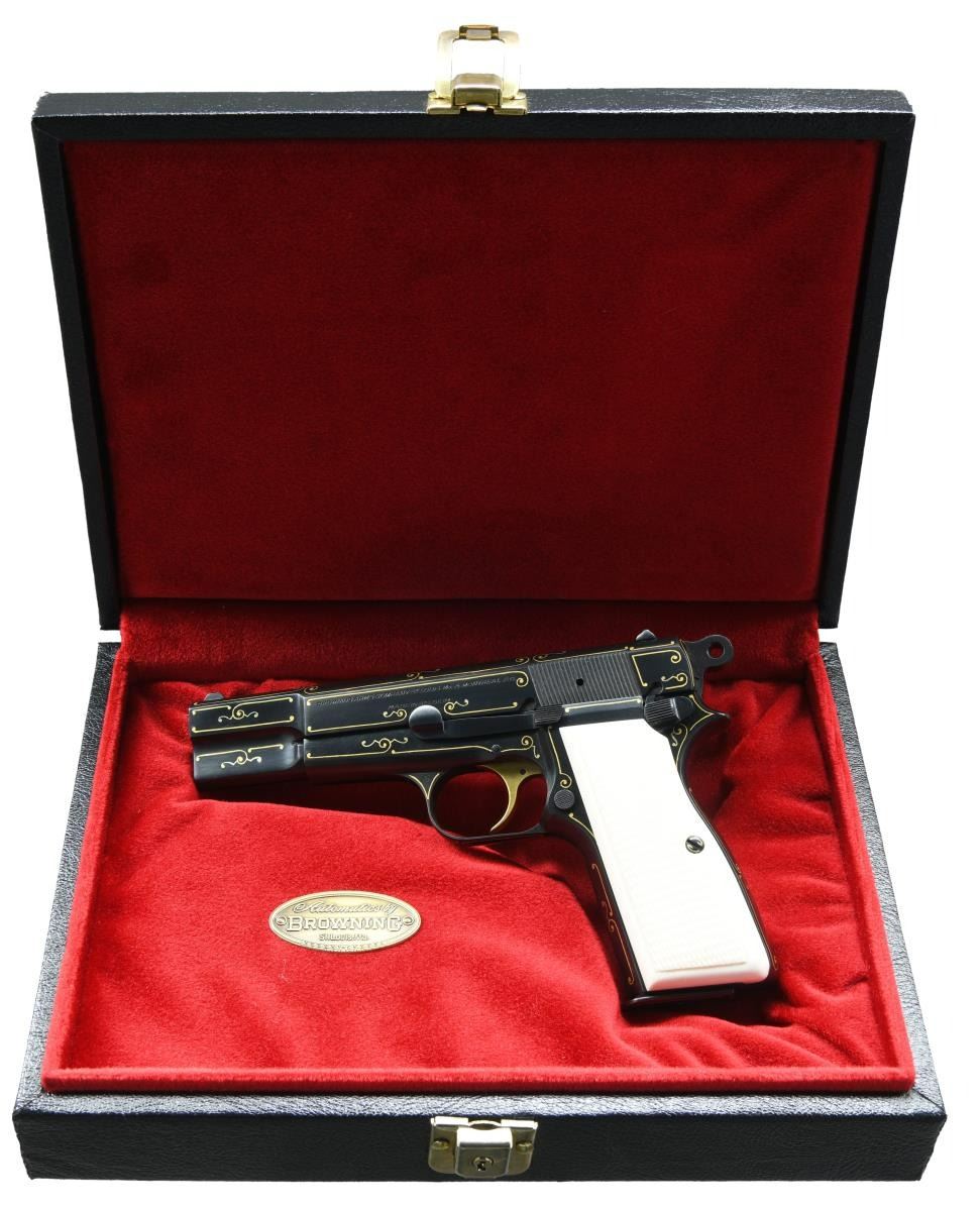 Lot 2023 CASED GOLD INLAID BROWNING HI-POWER SEMI-AUTOMATIC