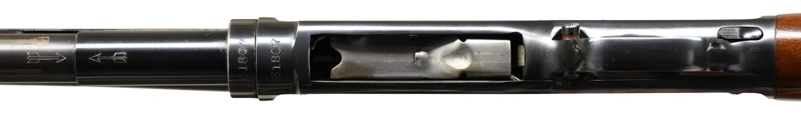 SHOTGUN. Cal. 410. 3". S# 61807. Bbl. 28" w/ solid rib & fixed Mod choke. Steel bead. Blue finish. Flat bottom grooved forearm & rare straight grip field stock. LOP: 14" over original buttplate. Mfg. 1947. CONDITION: over 97% blue showing slight slide & edge wear. Original wood finish shows small scratches & marks. Bright near excellent bore. (23-4862/DS). CURIO. $2,000-4,000.