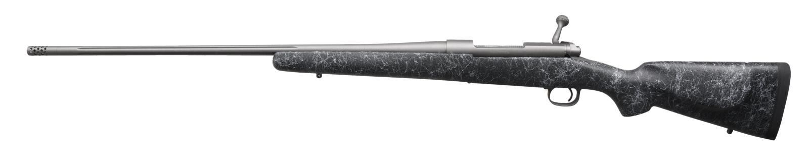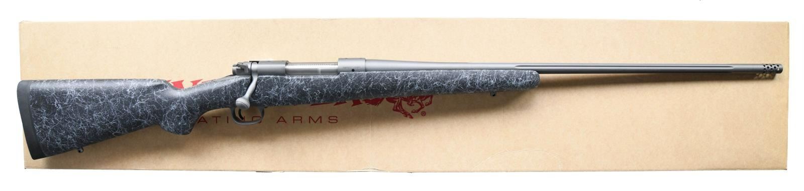 RIFLE WITH MATCHING FACTORY BOX. Cal. 300 Win Mag. S# WIPT07507YM35G. Bbl 26". Model 70 Extreme Weather SS manufactured by Browning Viana in Portugal and imported by BACO Inc. of Morgan, UT. The left side of the barrel is stamped with the model and caliber designations, with "-MODEL 70 EXTREME WEATHER SS-" above BACO Inc.'s importer information on the right. Winchester trademark logo is marked on the left side of the receiver. Metal components exhibit a dark matte gray stainless steel finish. Bell & Carlson black composite stock featuring white spider webbing and a Pachmayr Decelerator rubber recoil pad. Fluted barrel with threaded muzzle brake. UNATTACHED ACCESSORIES: matching factory box containing its styrofoam insert and factory paperwork. CONDITION: near new, with metal components retaining virtually all of their original factory matte gray stainless steel finish overall. Brilliant mirror bore, exhibiting sharp and well defined rifling throughout. Stock is excellent overall. Box shows some mild exterior wear from handling and storage, but otherwise remains sturdy and serviceable. PROVENANCE: The Collection of Gun Sport Ltd. owned by Jon R. Thomas. (23-3572/MLW). MODERN. $1,000-1,500.