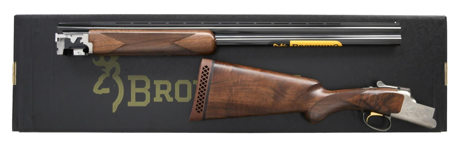 BOX. Cal. 12 Ga., 3". S# JP13548YY131. Blued 28" VR bbls. with Full & Mod Invector Plus screw in chokes. Boxlock coin finished action with Grade I engraving at sides. Bottom of action marked "White Lightning" in gold. Checkered walnut round knob stock and forearm. UNATTACHED ACCESSORIES: matching Browning black cardboard box with foam inserts, lock, chokes and paperwork. CONDITION: all aspects near excellent; appears new. PROVENANCE: The Collection of Gun Sport Ltd. owned by Jon R. Thomas. (23-3412/BH). MODERN. $1,600-2,200.