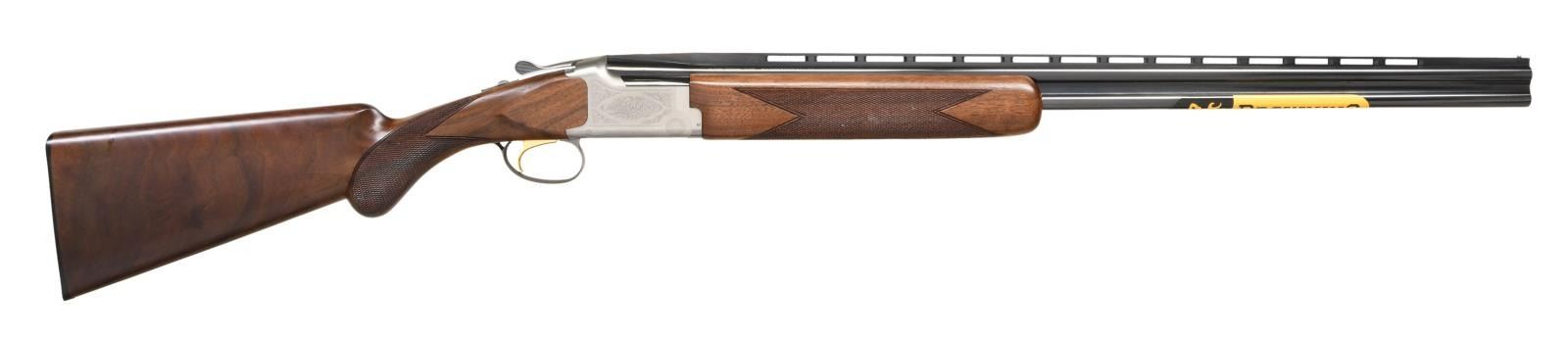 SHOTGUN. Cal. 410, 3". S# 03456CIT50 (2010). Mfg. by Miroku w/ VR 28" bbls. Invector choke tubes: Full, Mod & IC included. Silver Nitrade finished action w/ scroll engraving & gold inlaid "WHITE / LIGHTNING" on bottom. Gold plated SST & ejectors. Checkered walnut stock set. LOP: 14 1/2" to Browning buttplate. UNATTACHED ACCESSORIES: matching numbered Browning box containing gun lock, paperwork & accessory box containing choke tube & choke wrench. CONDITION: near excellent overall wood & metal finish w/ bbl. still retaining Browning decal. Bright shiny bores. PROVENANCE: The Collection of Gun Sport Ltd. owned by Jon R. Thomas. (23-3830/MD). MODERN. $1,200-1,800.