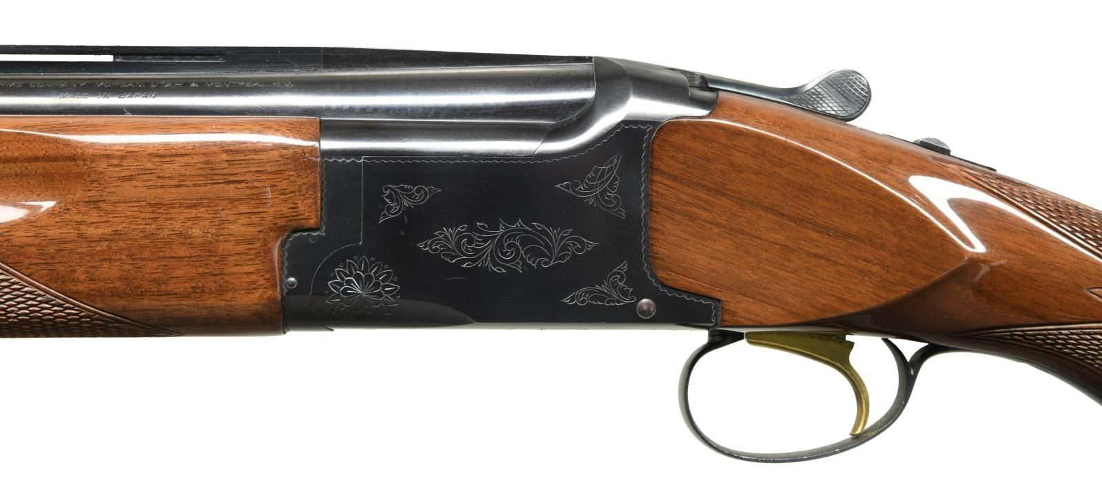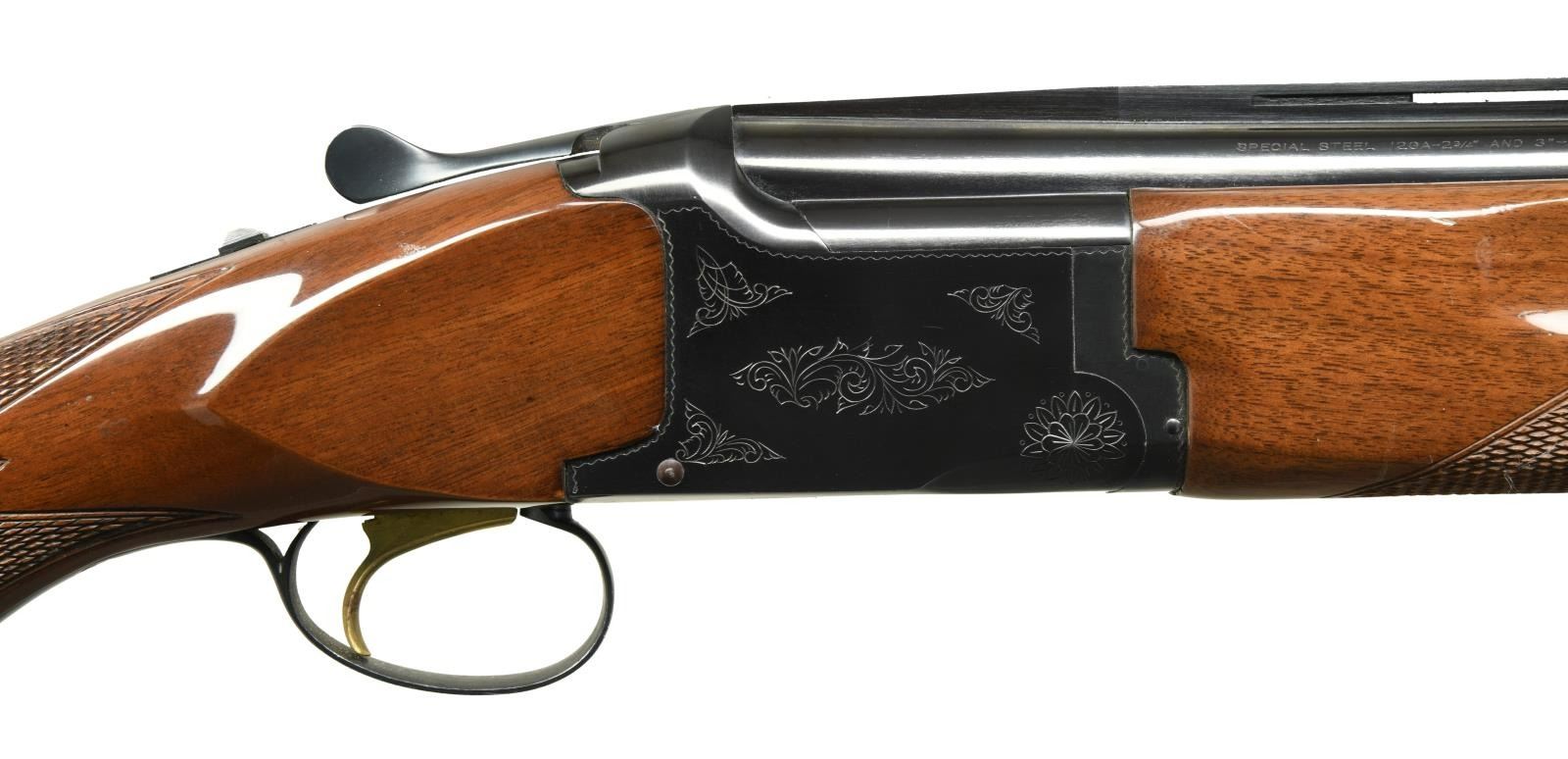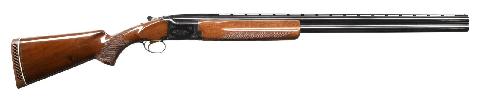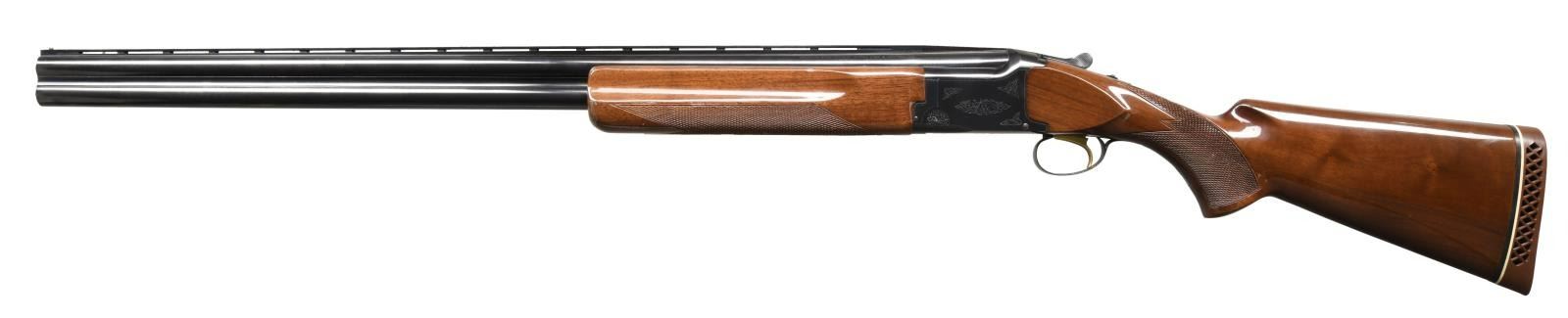Cal. 12 Ga., 2 3/4" & 3". S# 01398PM153 (1980). VR 30" Bbls. w/ bright bead. Full over Mod chokes. Blue finished boxlock action w/ light engraving, gold plated SST & ejectors. Checkered walnut stock set. LOP: 14 1/4" to Browning ventilated pad. CONDITION: near excellent blue w/ light edge wear on VR. Very good wood finish w/ light marks & scratches. Bright shiny bores w/ light fouling. (23-3047/MD). MODERN. $800-1,200.