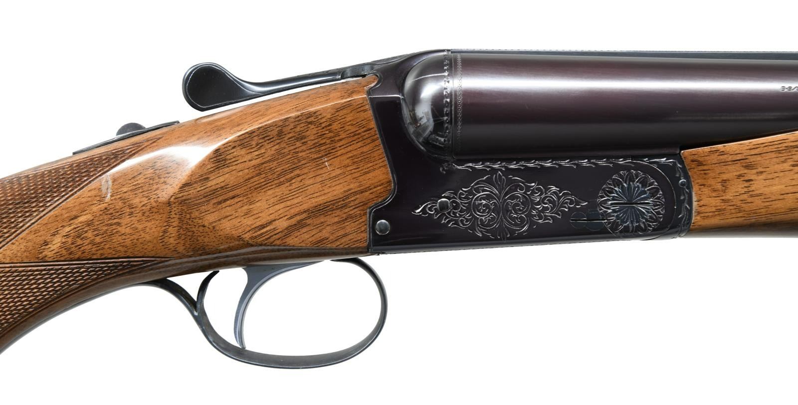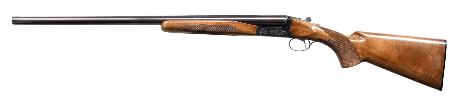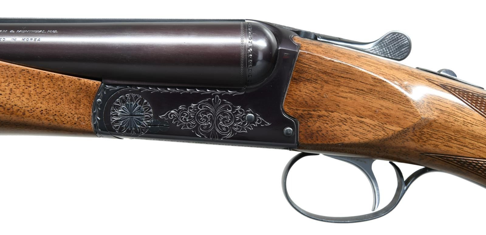 Cal. 12 Ga., 2 3/4" & 3". S# 5278A47 (1974). Bbls. 26" w/ matted rib & bright bead. Fixed Mod. chokes. Left bbl. marked "Made in Japan & Assembled in Korea". Blued boxlock action w/ scroll engraving. Silver plated single non selective trigger. Extractors. Beavertail forearm & pistol grip gloss finished checkered walnut stock. LOP: 14 1/4" to Browning buttplate. CONDITION: near excellent over 95% blue w/ bbls. acquiring a plum hue. Very good wood finish showing scattered handling marks that pierce the finish on buttstock. Buttplate has brown mildew staining. Bright shiny bores. (23-1801/MD). MODERN. $1,000-1,500.