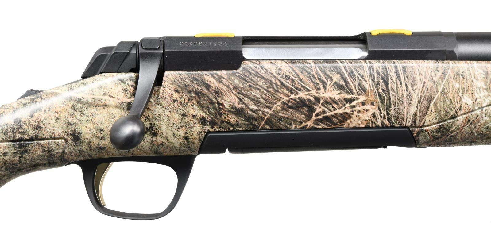 RIFLE. Cal. 6.5 Creedmoor. S#. 33466ZT354. BBL. 24" heavy sporter weight without sights. 3 lug short throw action. Top tang safety. Gold finished adj. feather trigger. DuraTouch Armor coated stock has palm swell, textured gripping surfaces, Inflex pad and Mossy Oak Brush camo. MAGAZINES: 1 detachable 5 rd. rotary. UNATTCHED ACCESORIES: Original box containing owner manual packet & trigger lock. CONDITION: Near excellent retaining nearly all finish. Near excellent bore. (23-1306/DS). MODERN. $700-1000.