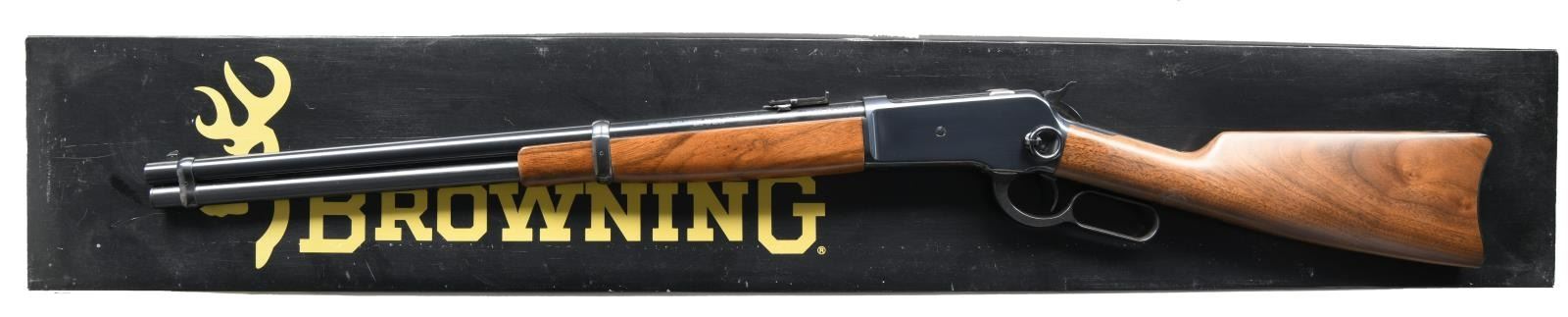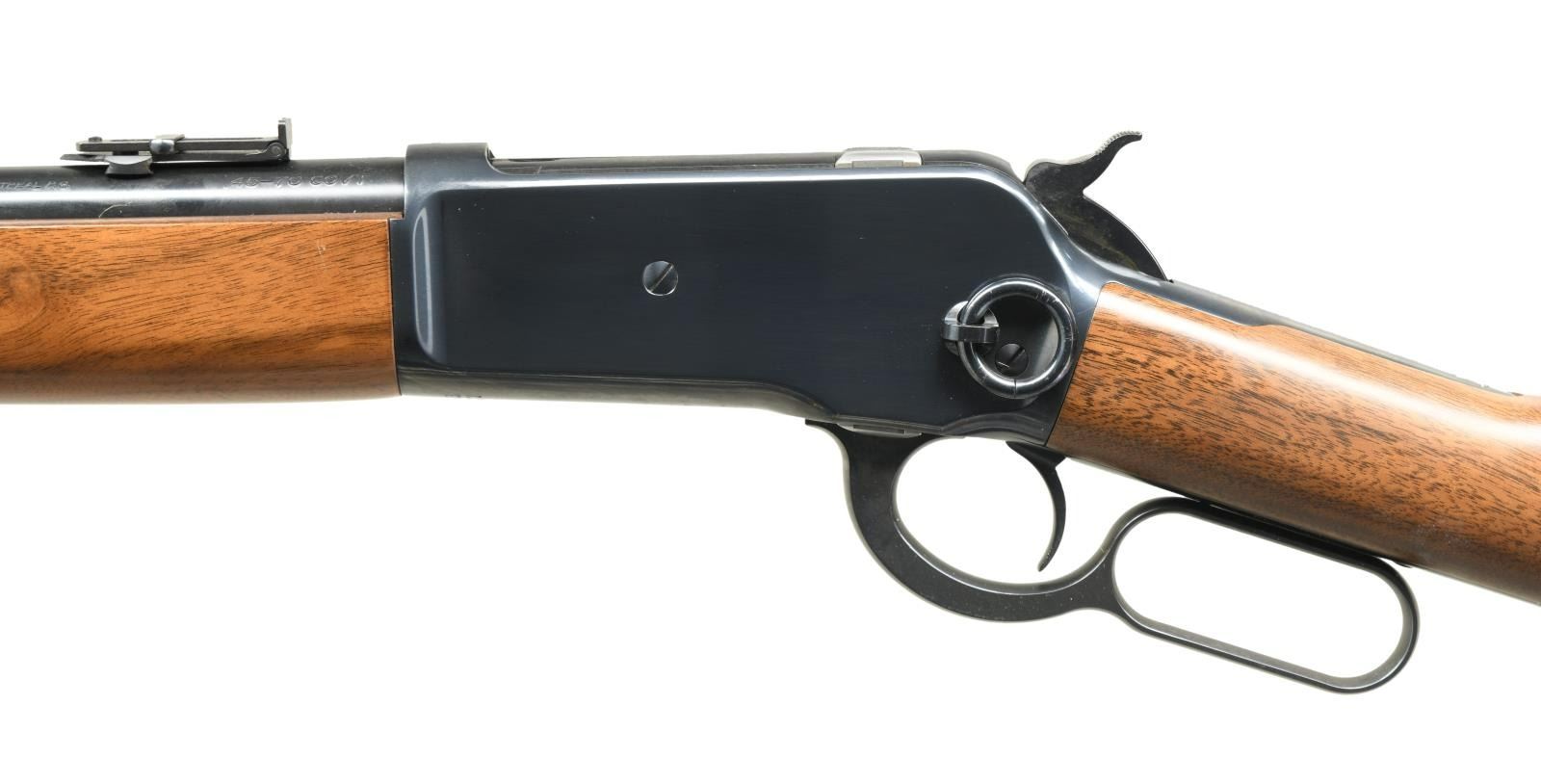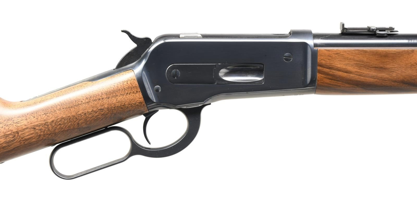 Cal. 45-70. S#. 00693NY1C7. Bbl. 22" with pinned blade front & carbine leaf rear sights. Full length mag. Blue finish. Walnut forend & straight grip stock with steel carbine buttplate. Limited edition of 7000 mfg. 1992-1993. UNATTACHED ACCESORIES: Original box with owners manual. CONDITON: As new in box. (23-1332/DS). MODERN. $1000-1500.