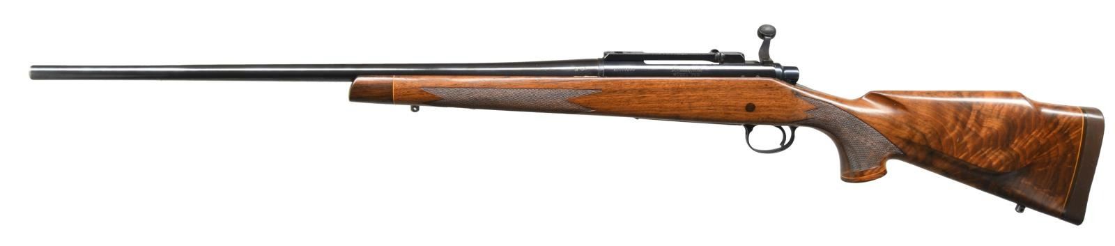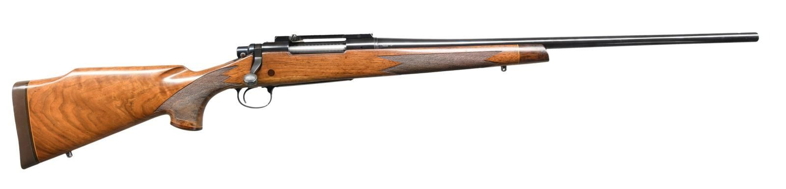 Cal. 7mm Rem Mag. S# A6577030. Bbl. 24". Redfield scope base present on receiver. Higher grade Remington 700 rifle. Jeweled bolt. 40X Trigger. Satin-finished "C" grade American Walnut stock w/ raised cheekpiece & bottom mounted sling studs. Factory recoil pad. LOP: 13 1/2". CONDITION: stock shows some light dings & handling marks. Some bedding compound visible on left side of bbl. Metal retains 90% blue w/ some edge wear & scattered scratches on floorplate. Very good plus bright bore. PROVENANCE: The Collection of Gun Sport Ltd. owned by Jon R. Thomas. (23-3410/MJC). MODERN. $1200-1800.