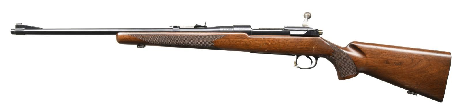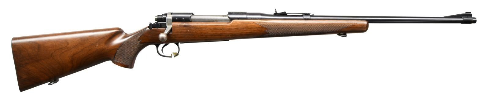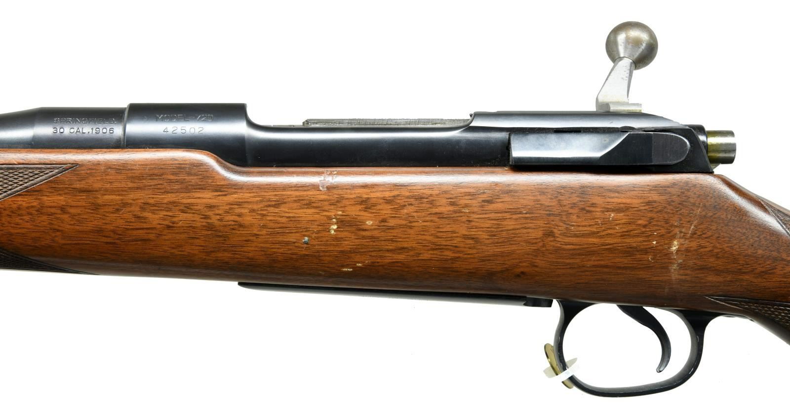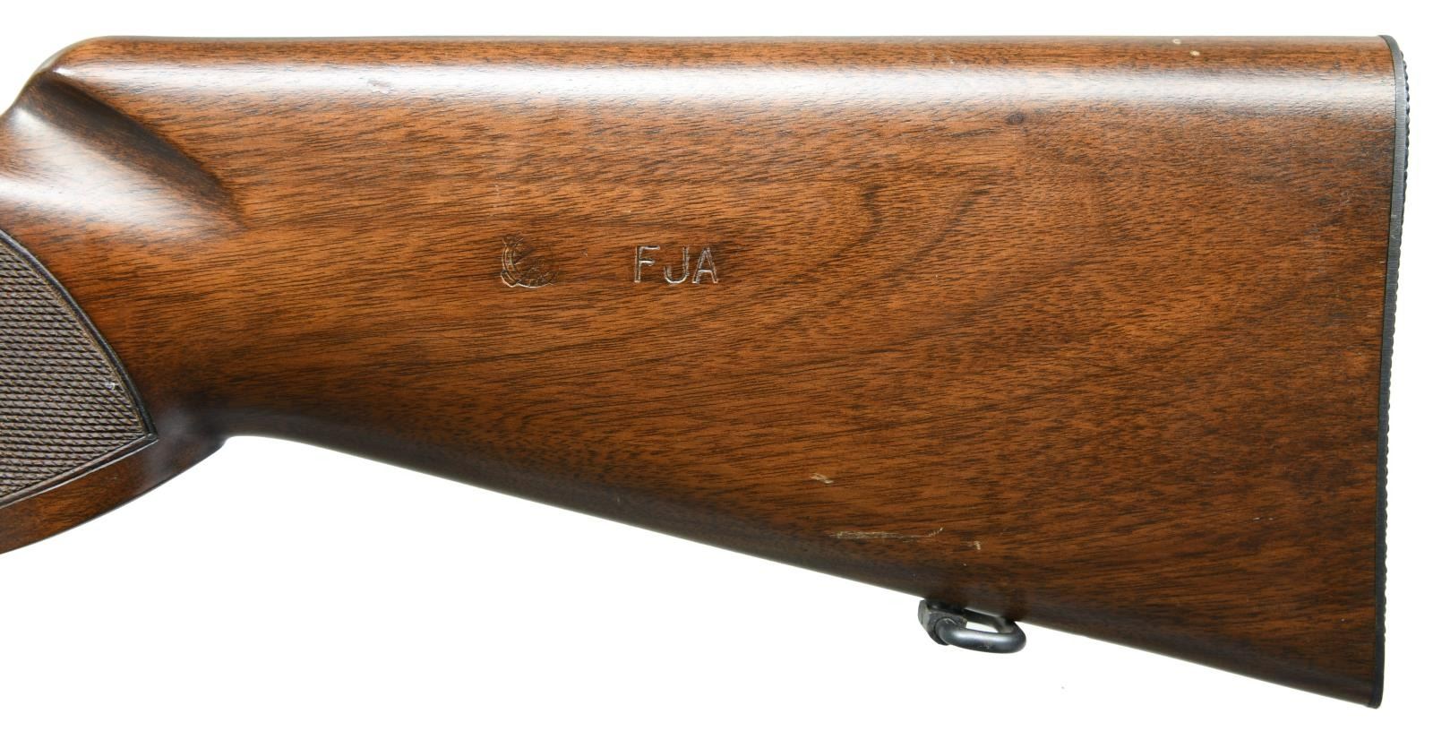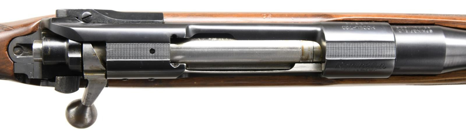 GUNNERY SERGEANT BRIAN H. ZUIS. Cal. 30-06. S# 42502. Bbl 22". 1 of only 2,500 Model 720 rifles manufactured by Remington prior to the onset of World War II. The top of the barrel is stamped with Remington's 2 line address, with the left side of the being stamped "SPRINGFIELD./ 30 CAL. 1906". "MODEL-720/ 42502" stamped on the left side of the receiver, and with "Remington" across the right of the receiver. Left side of the buttstock bears a crossed cannons cartouche followed by an "FJA" inspectors stamp. Floorplate is engraved "Presented to/ GySgt Brian H. Zins/ 2005 NRA National Pistol Champion/ "One of One" ". Receiver and barrel exhibit a blued finish, with the floorplate and trigger guard exhibiting a blank anodized finish. 1 piece checkered wood buttstock, with a Remington checkered brown plastic buttplate. CONDITION: metal components retain the vast majority of their original factory finishes, exhibiting mild surface oxidation on the bolt handle and knob, as well as on the trigger guard, just forward of the floorplate. Mirror bore, exhibiting well defined rifling throughout. Stock shows some scattered marks from handling and storage, but otherwise very good overall. PROVENANCE: From the estate collection of Thomas J. Mulligan. (23-1204/MLW). CURIO. $2,500-3,500.