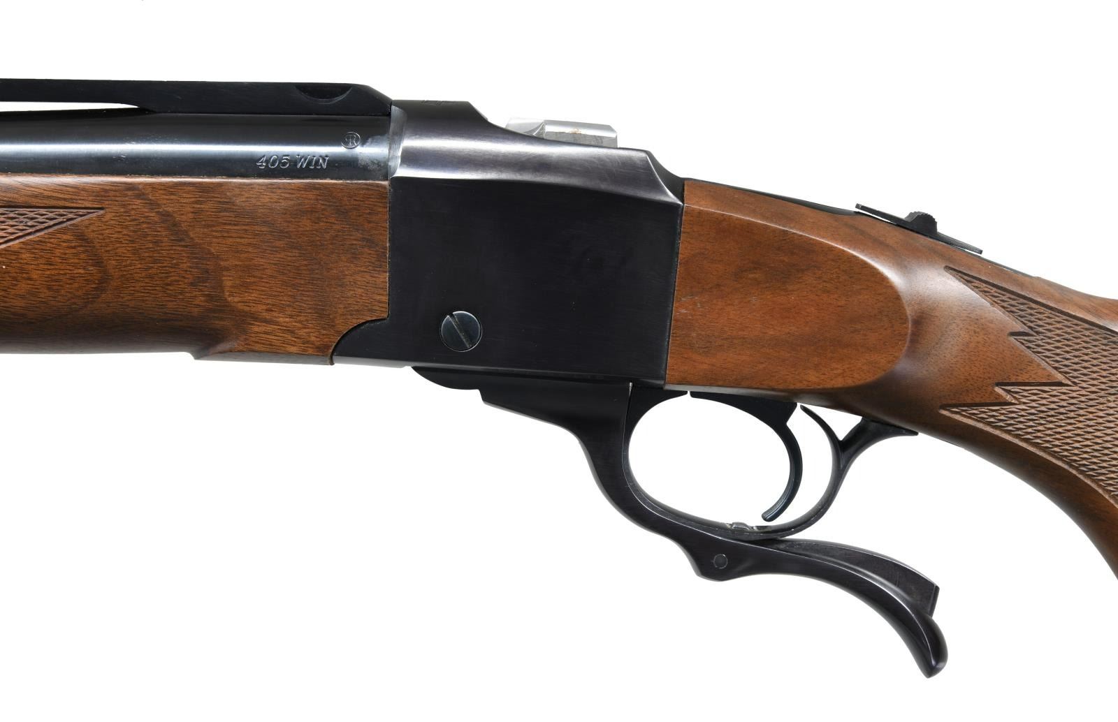 Cal. 405 Win. S# 134-06185. Bbl. 24". Ramped gold bead front sight. Flip up rear sight. Factory scope mount present. Checkered walnut stock w/ factory recoil pad. Alexander Henry forend. Bottom mounted sling studs. CONDITION: all aspects rate very good plus to near excellent w/ a few smudge marks on bbl. & a couple minor handling marks. PROVENANCE: From the Estate of Jon Thomas. (23-1665/MJC). MODERN. $1,000-1,500
