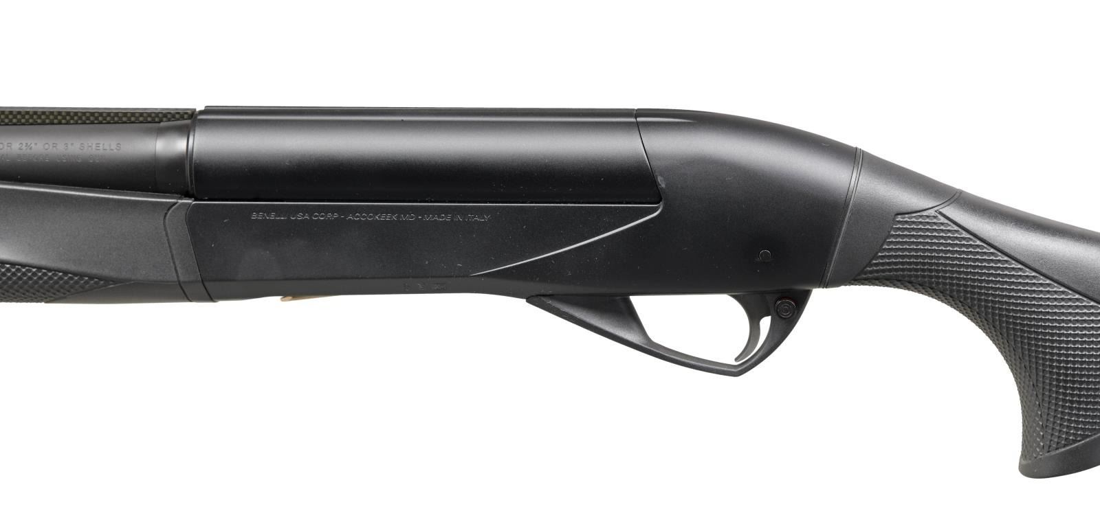 Cal. 12 Ga 3". S# F388757R20. Bbl. 28" VR choked IC. Red fiber optic front sight. Silver bead rear sight. Inertia operating system. B.E.S.T. black matte finish. Red factory plastic banner present on bbl. Black synthetic stock w/ bottom mounted sling provisions & factory recoil pad. LOP:14 1/4". UNATTACHED ACCESSORIES: factory box matching numbered to gun w/ hardcase, manual, Ben-oil bottle & four spare chokes. CONDITION: all aspects near new in box. PROVENANCE: The Collection of Gun Sport Ltd. owned by Jon R. Thomas. (23-3683/MJC). MODERN. $1,000-1,500.