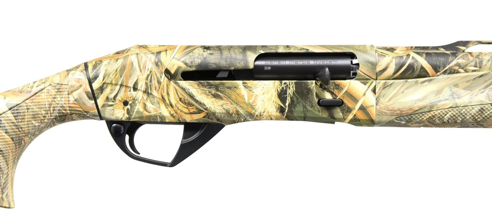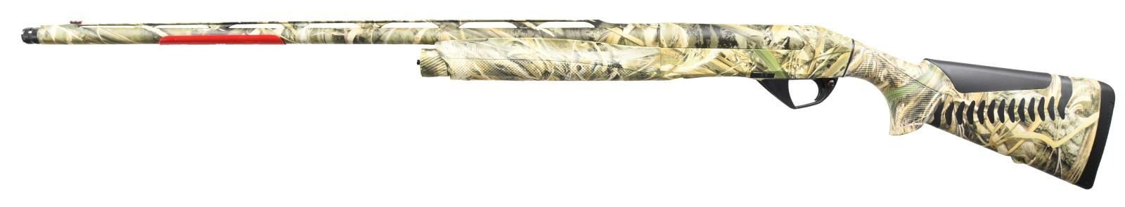 Cal. 20 Ga. 3". S# X077863D. Bbl. 28" VR choked modified. Red fiber optic front sight. Inertia driven operating system. RealTree Max 5 camoflauge finish on metal & stock. Factory plastic banner present on bbl. Pistol grip stock & forend w/ bottom mounted sling provisions & factory recoil pad. LOP: 14 1/8". UNATTACHED ACCESSORIES: factory box matching numbered to gun w/ hardcase, Ben-oil tube, choke wrench, four spare chokes & manual. CONDITION: all aspects near new in box. PROVENANCE: The Collection of Gun Sport Ltd. owned by Jon R. Thomas. (23-3498/MJC). MODERN. $1,500-2,250.