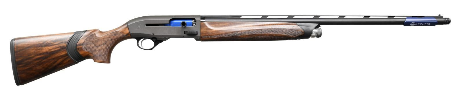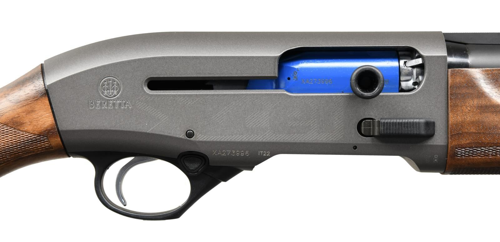 WITH MATCHING FACTORY BOX. Cal. 12 GA, 2 3/4", 3". S# XA273996. Bbl 28". A400 Xcel semi-automatic shotgun manufactured by Beretta in Italy and imported by Beretta U.S.A. Corp. The left side of the barrel is marked with Beretta's manufacturer information above the caliber designation, with the right side exhibiting Beretta U.S.A. Corp.'s importer information. The left side of the receiver exhibits a lightly engraved "XCEL", followed by the model and caliber designation, with the Beretta logo and another lightly engraved "XCEL" on the right. Matte gray receiver with matte blued barrel featuring a high vent rib, bead white sight, and Modified choke. Checkered wood buttstock and forend with "EXTRALIGHT" black rubber recoil pad. UNATTACHED ACCESSORIES: matching factory box. CONDITION: near new, with metal components retaining virtually all of their original factory applied finishes overall. Mirror bore. Wood furniture is excellent overall. Box exhibits mild exterior wear, but otherwise remains sturdy and serviceable. PROVENANCE: The Collection of Gun Sport Ltd. owned by Jon R. Thomas. (23-3834/MLW). MODERN. $1,000-1,500.