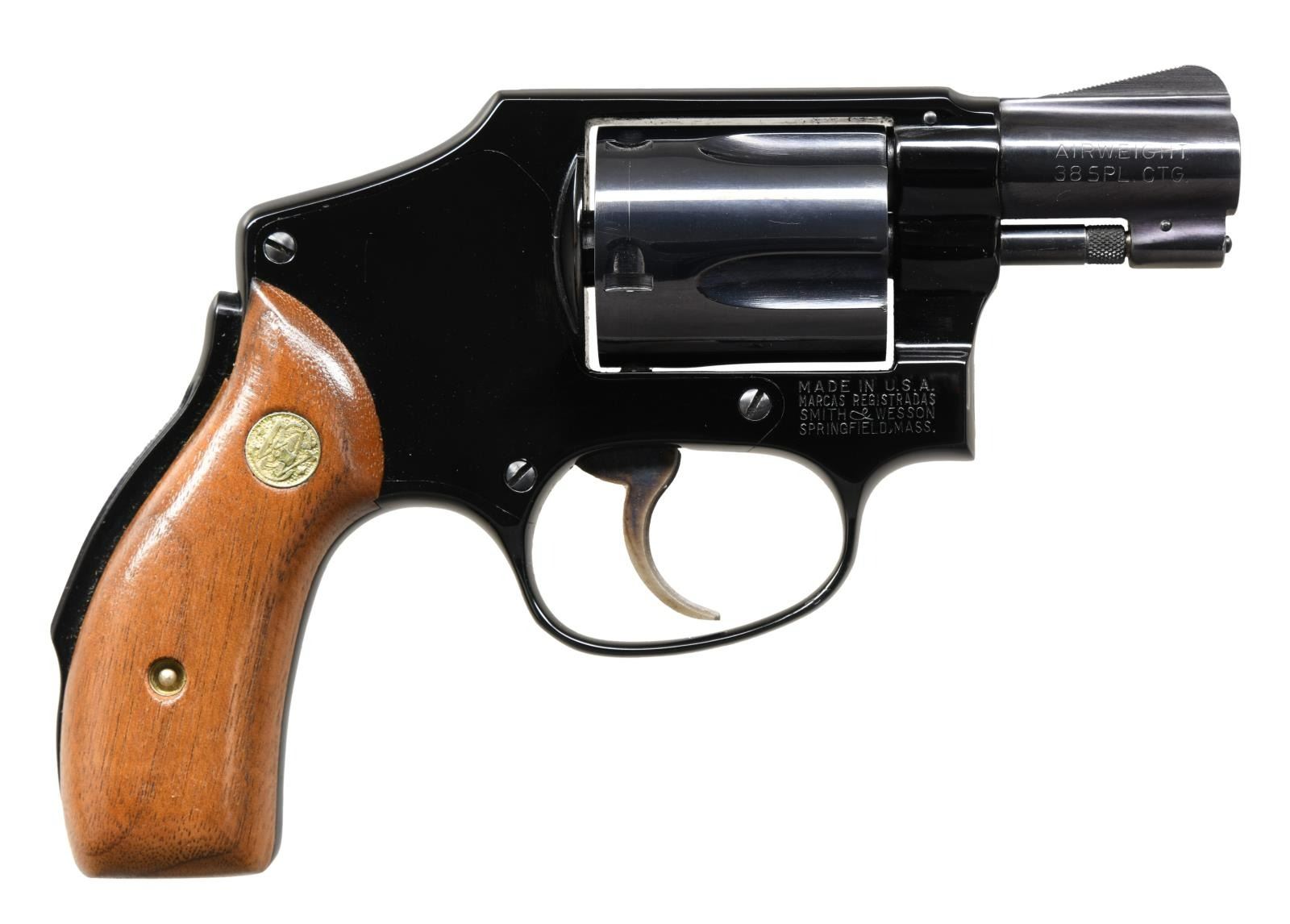Cal. 38 Spcl. S# L6669. Bbl. 2" pinned. Ramped blade front sight. Fixed rear sight. DAO revolver w/ grip safety & flat latch. Blue finish. Case colored trigger. Smooth walnut grips w/ S&W medallions. UNATTACHED ACCESSORIES: factory box matching numbered to gun w/ manual, cleaning rod, bore brush & factory paperwork. CONDITION: grips show some light handling wear. Trigger retains nearly all original case colors w/ light operational wear. Balance of metal retains 95% original blue w/ a drag line on cyl. & some light handling wear. Bright very good plus bore. (23-4956/MJC). CURIO. $700-1000.