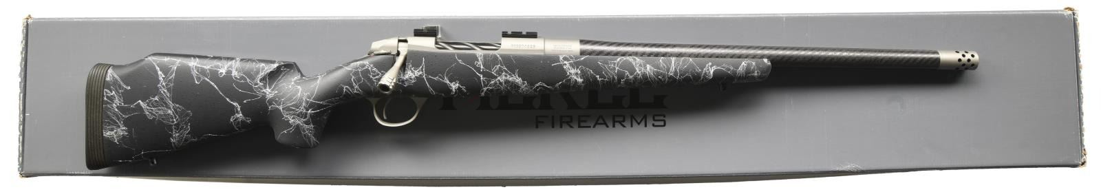 Cal. 7mm-08 Rem. S# F03S00925. Bbl. 20 threaded w/ detachable muzzle brake. Receiver has Weaver style scope bases. Bbl. has dark gray pebbled finish. Balance of metal has matte stainless finish. Black & gray pattern synthetic stock w/ left side cheekpiece & bottom mounted sling swivels. Limb Saver recoil pad. LOP: 13 1/2". MAGS: 1-5 rd. detachable. UNATTACHED ACCESSORIES: factory box w/ styrofoam inserts, manual & factory test target. CONDITION: all aspects near new in box. PROVENANCE: The Collection of Gun Sport Ltd. owned by Jon R. Thomas. (23-3702/MJC). MODERN. $2,000-3,000.