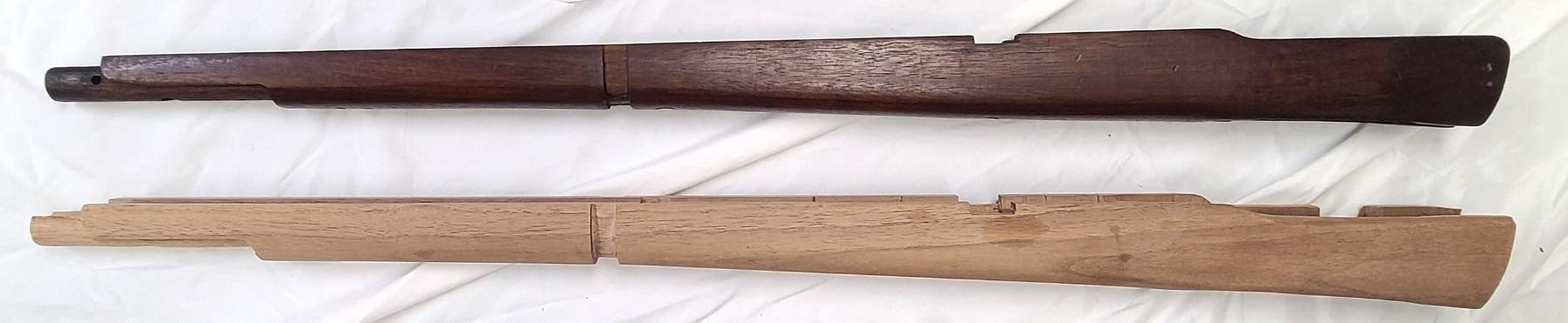 Included in this lot are 2 very nice lower full wood peices.. One is orginal and one is