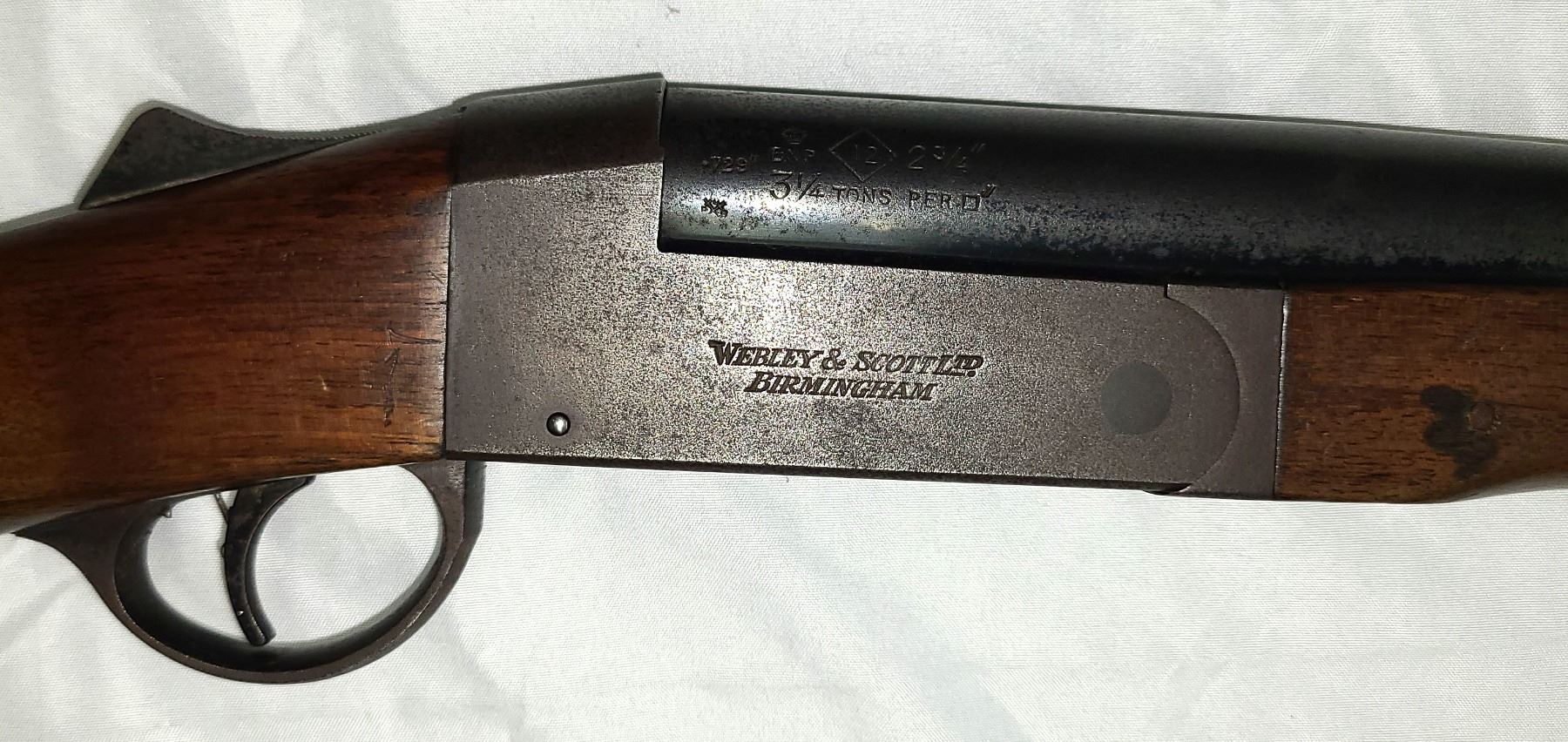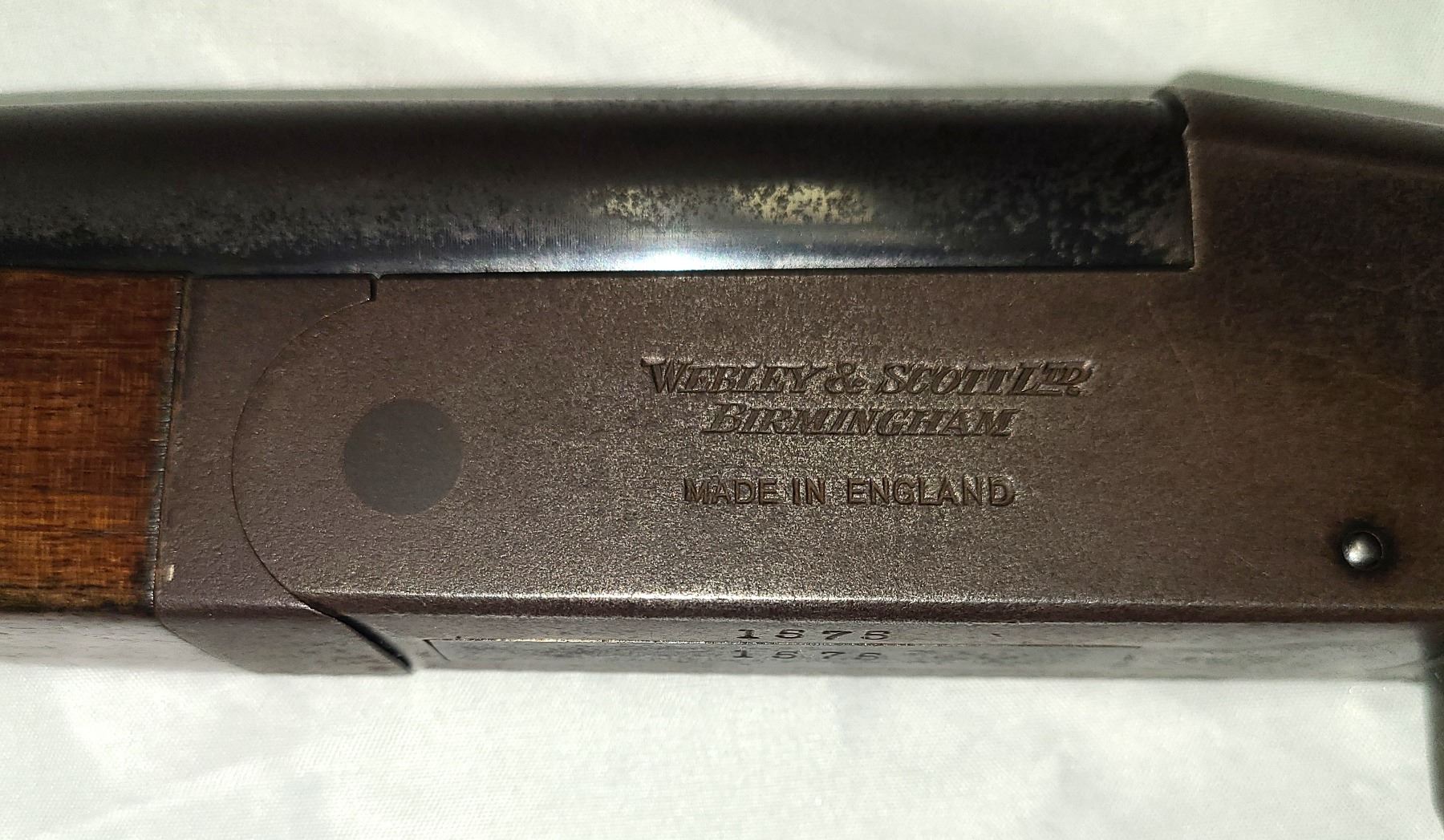 Stamped on both sides of receiver is WEBLEY & SCOTT LTD MADE IN ENGLAND