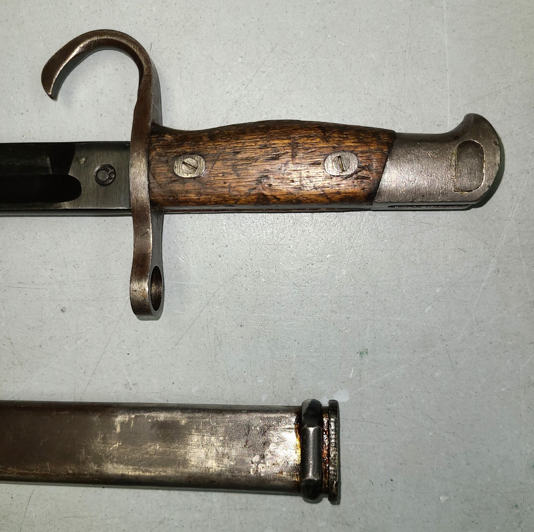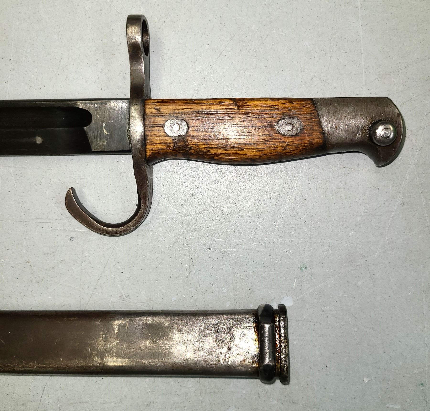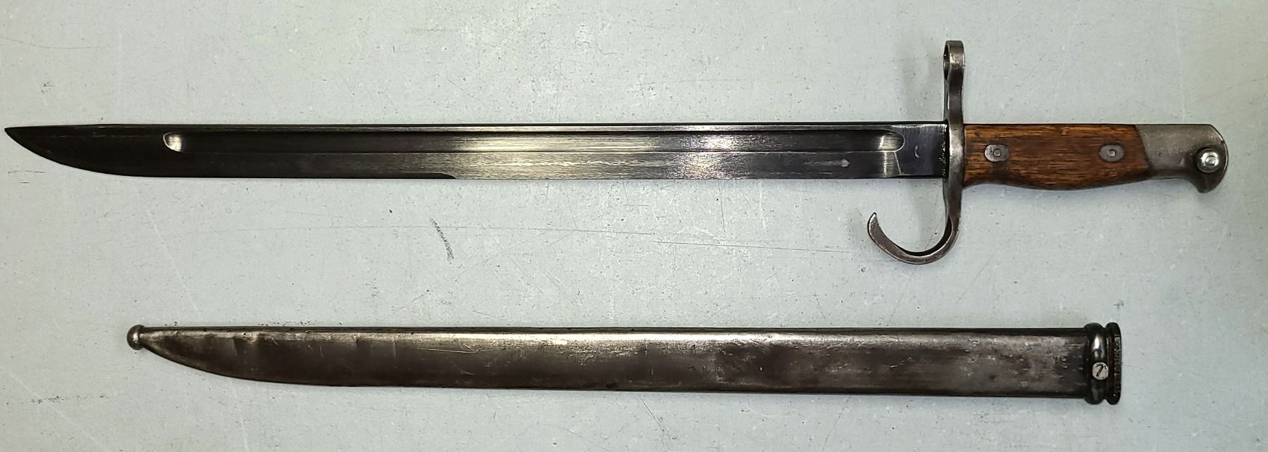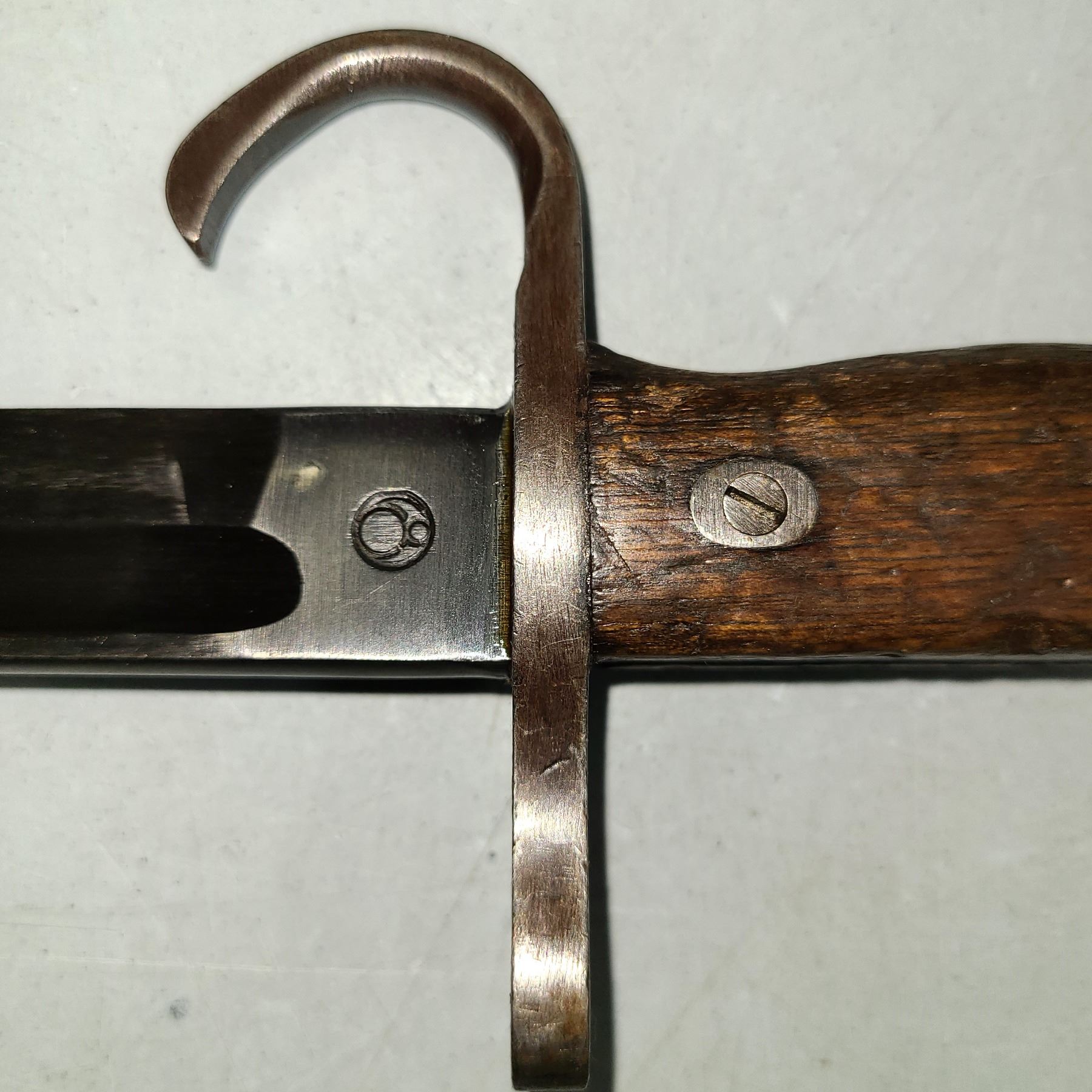 bayonet complete with fullered 15" blade. Hooked quillon cross guard and wood