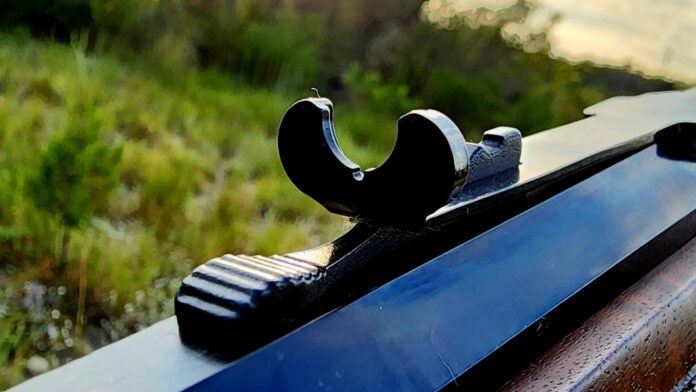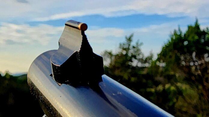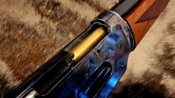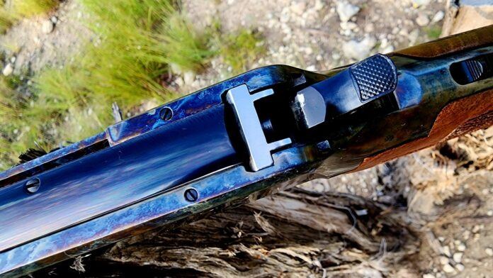 That 24-inch button rifled barrel is half octagonal, half round. It’s blued and polished