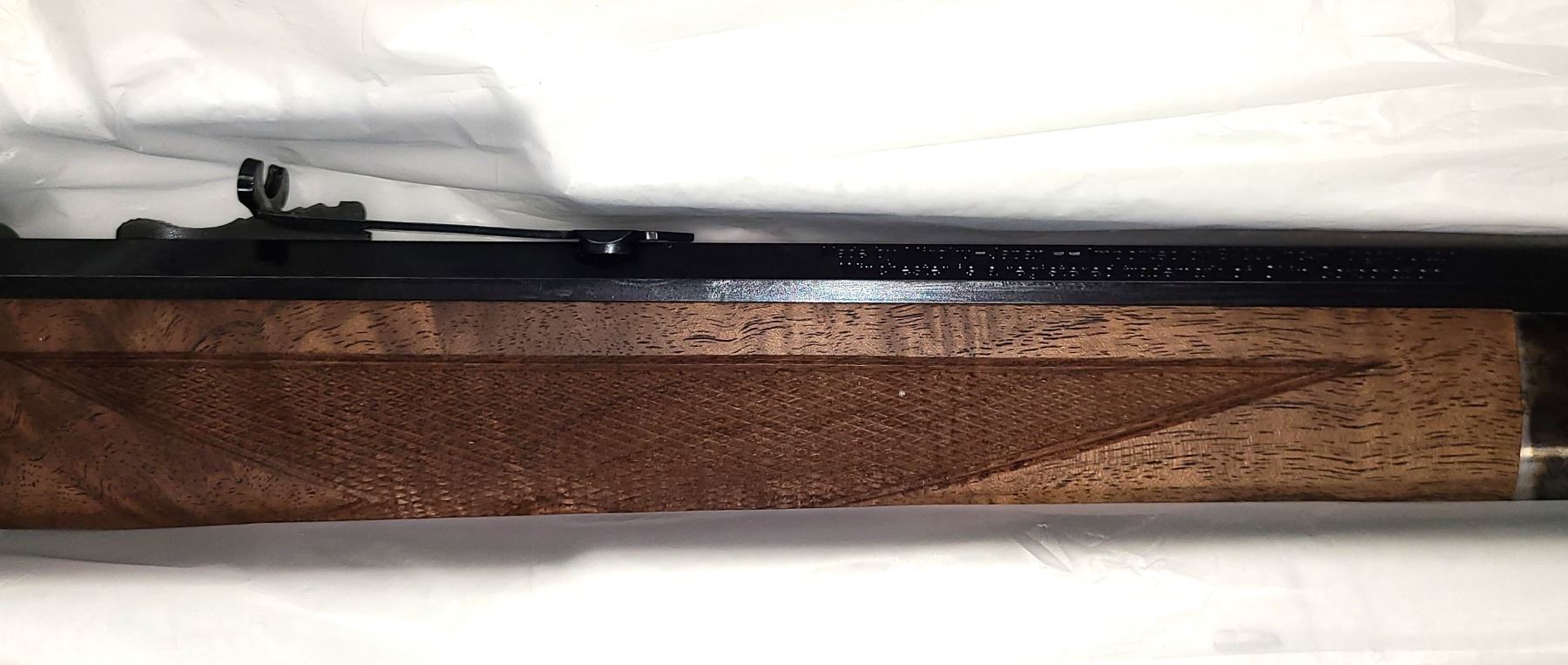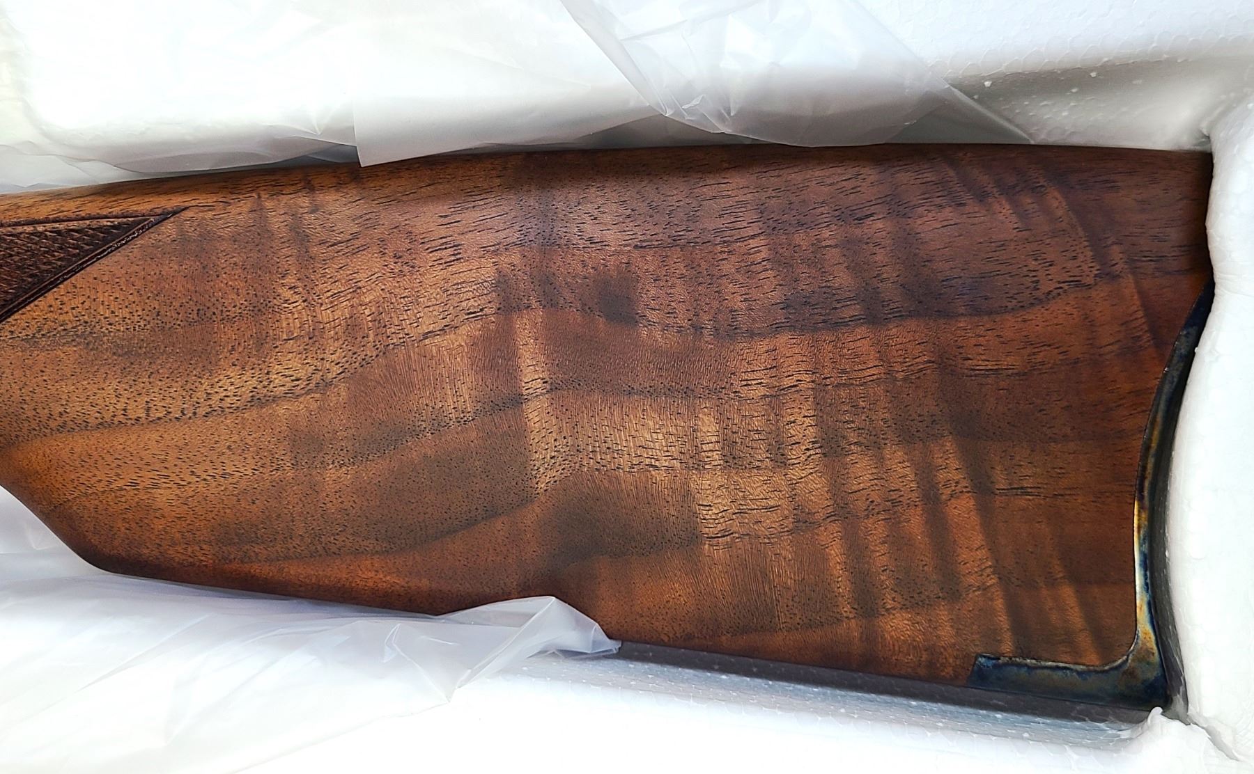 Wood Grade: Grade V/VI Walnut Stock with satin oil finish, authentic straight-grip styling and cut checkering