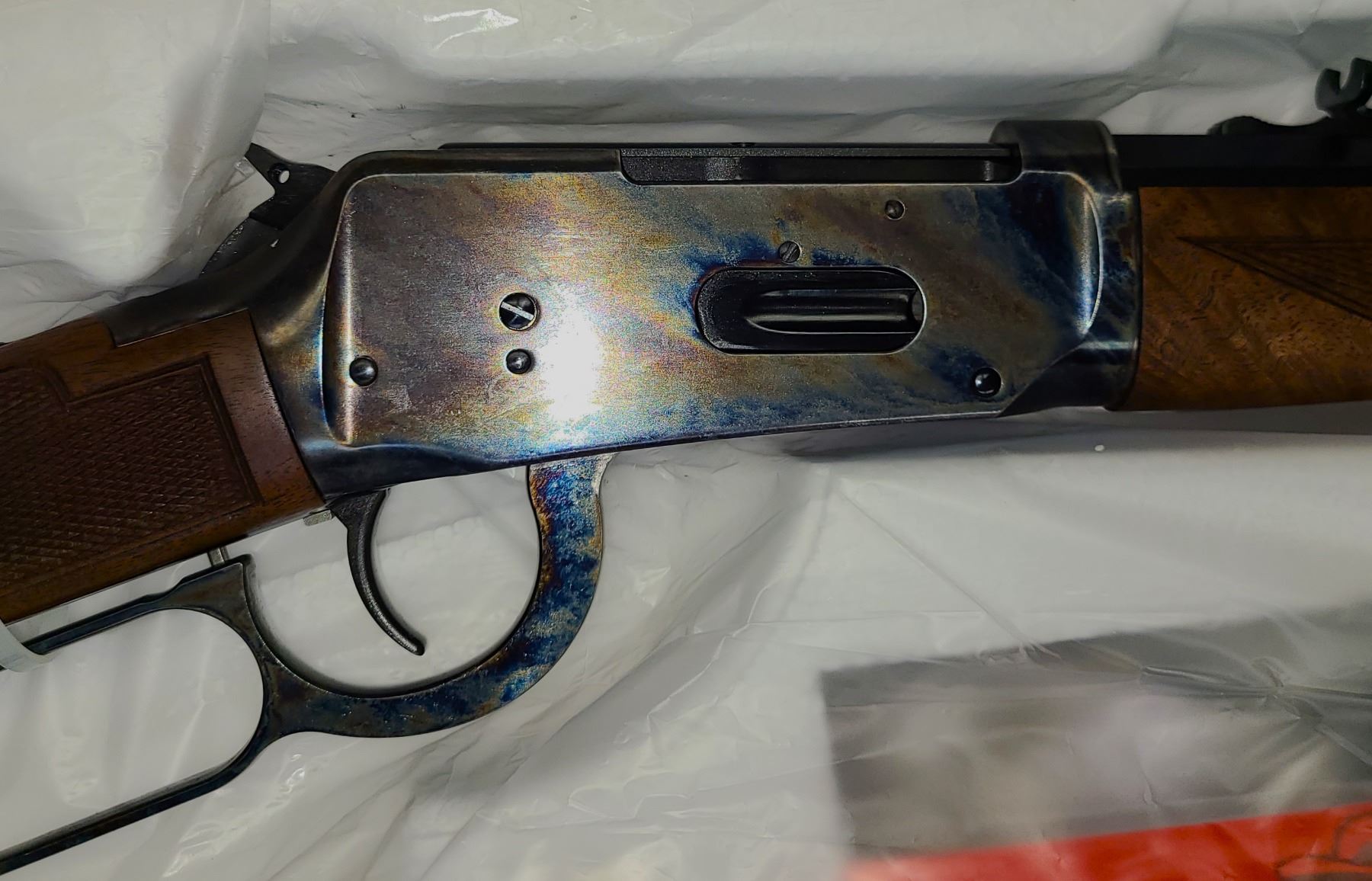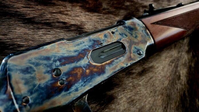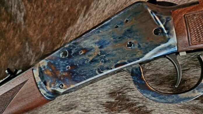 to a gleaming black. Note the color case hardening continues to the lever, the steel