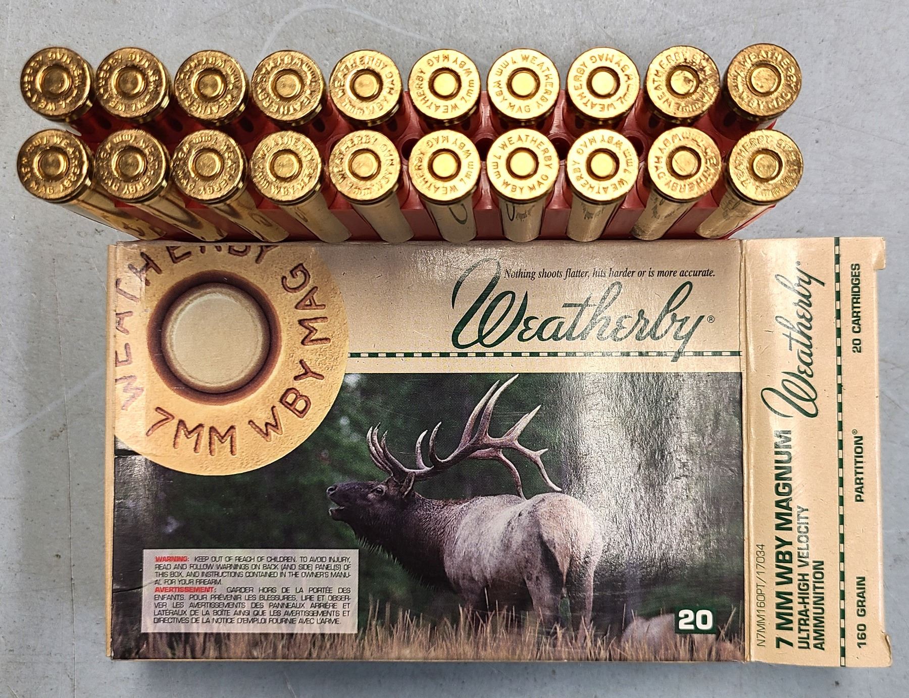 Lot 66 7mm Wby Weatherby Magnum Ammunition 160 gr 20 rds - Factory ammo