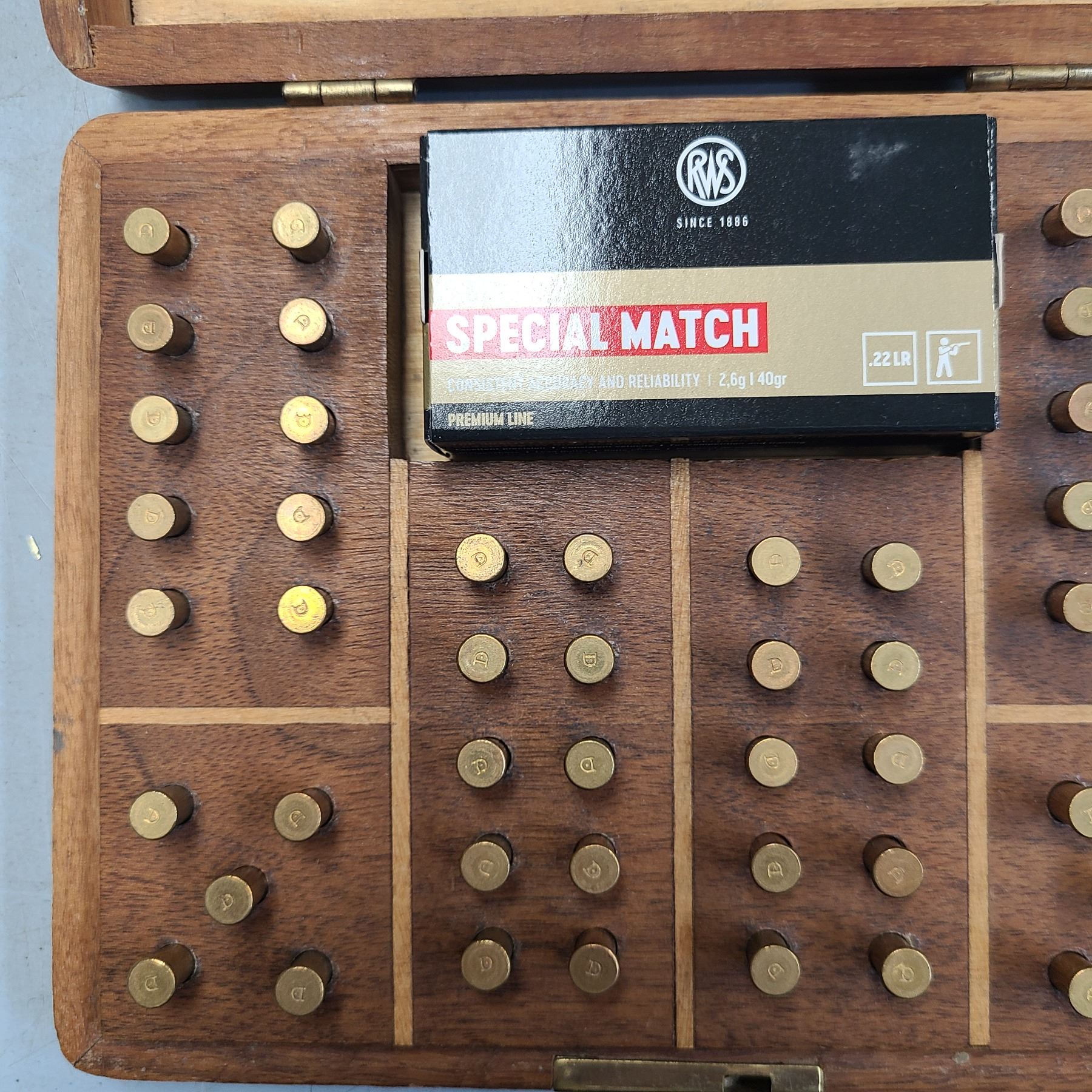 Lot 91 Match .22 LR Ammo in Wood Case - 100rds - 50 rds RWS and 50 rds Dominion