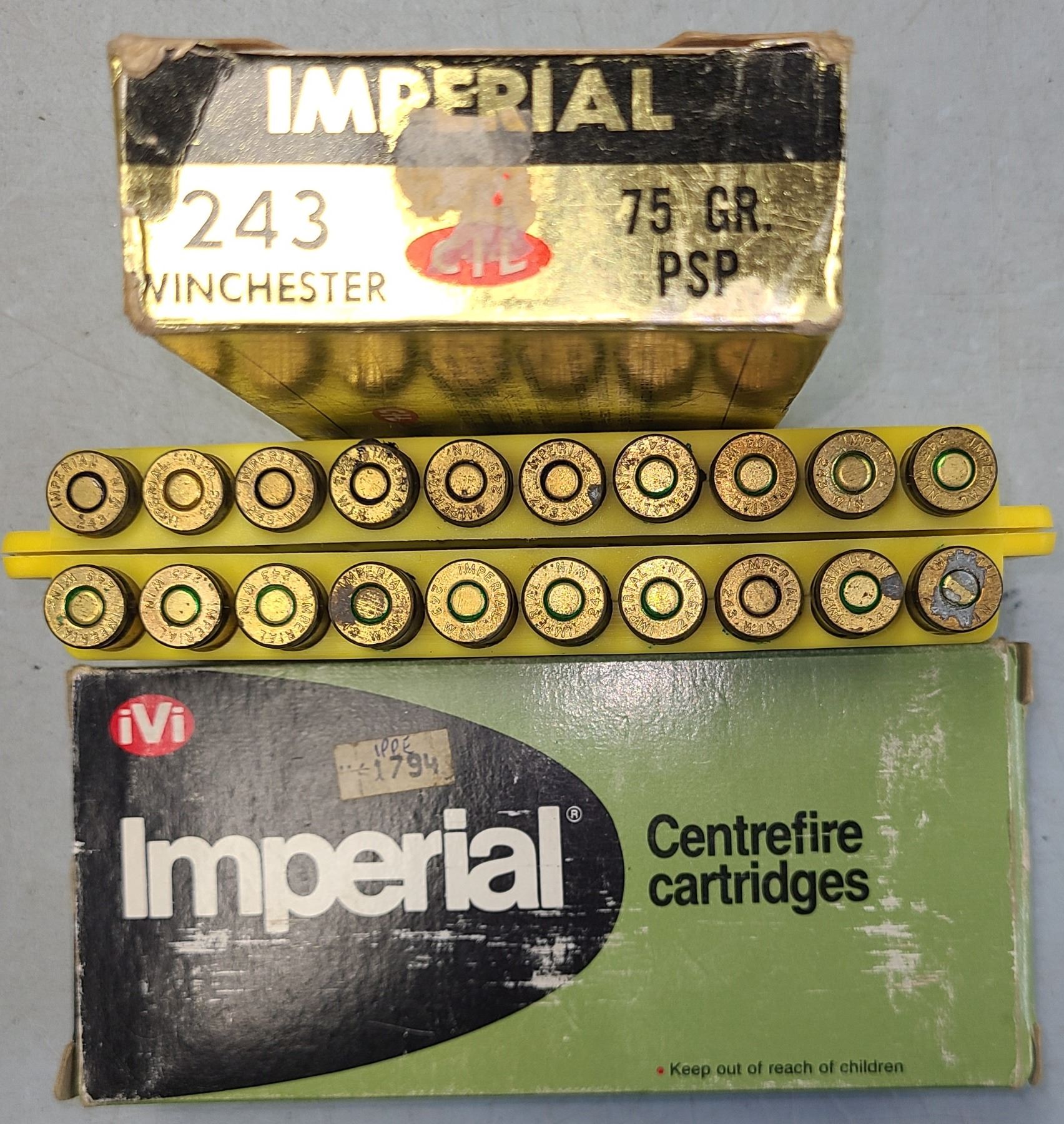 243 Win Ammo - Mixed Lot Imperial - 20 rd 75gr & 20rd 100gr Soft Point