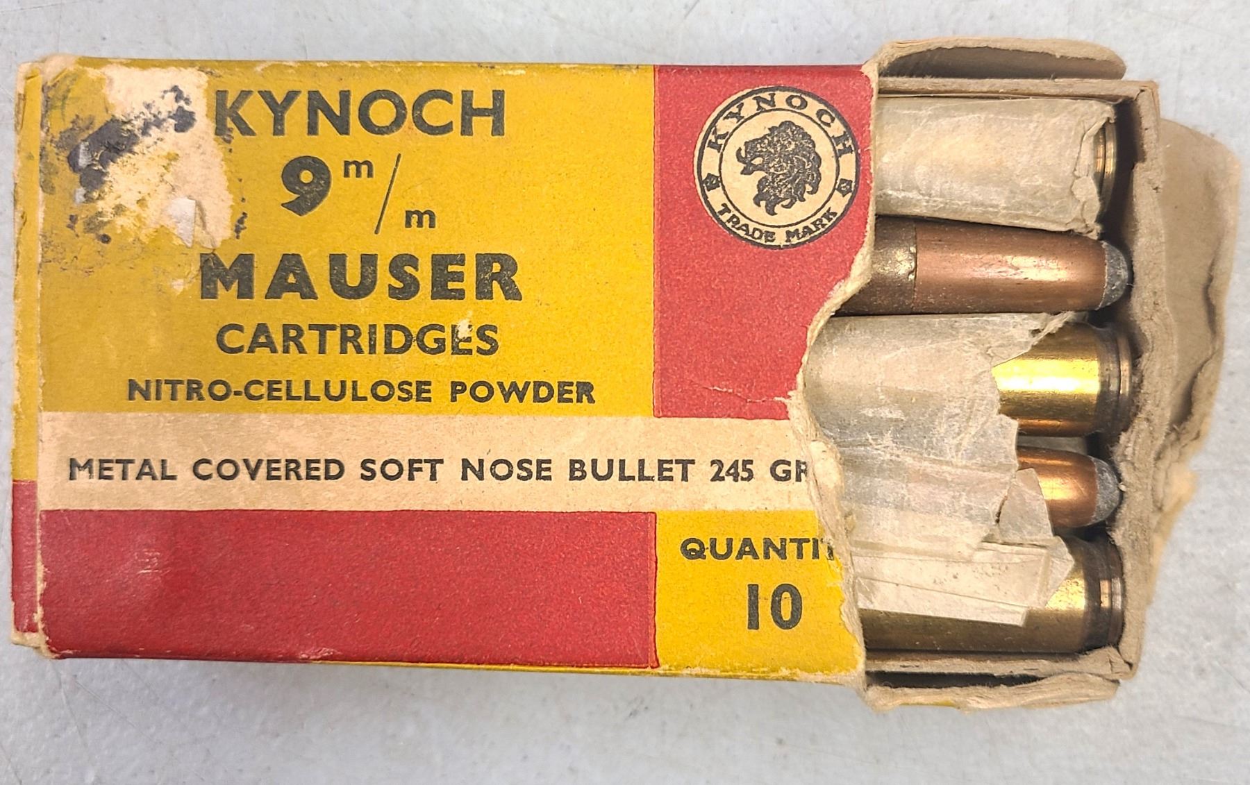 Lot 196 Kynoch 9 mm Mauser Nitro Ammunition - Vintage 10 rds 245 gr Soft Nose Bullet