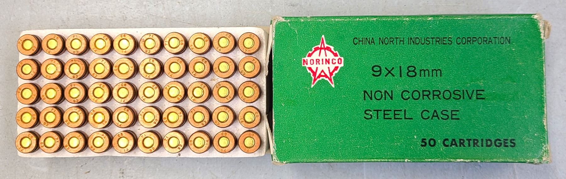 Lot 227 9mm Makarov (9 x 18mm) Norinco Ammunition - 50 rds Non Corrosice Steel Case Round Nose