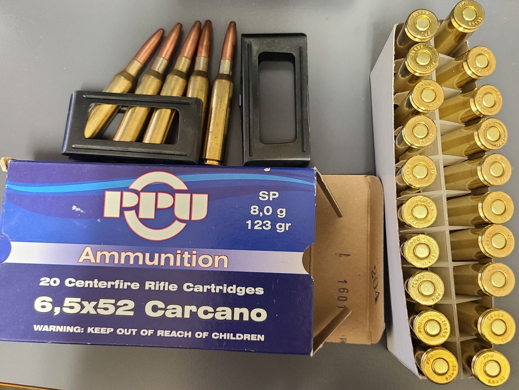 Carcano 6.5 x 52 Ammunition & 2 Stripper Clips - 25 rds Ammo