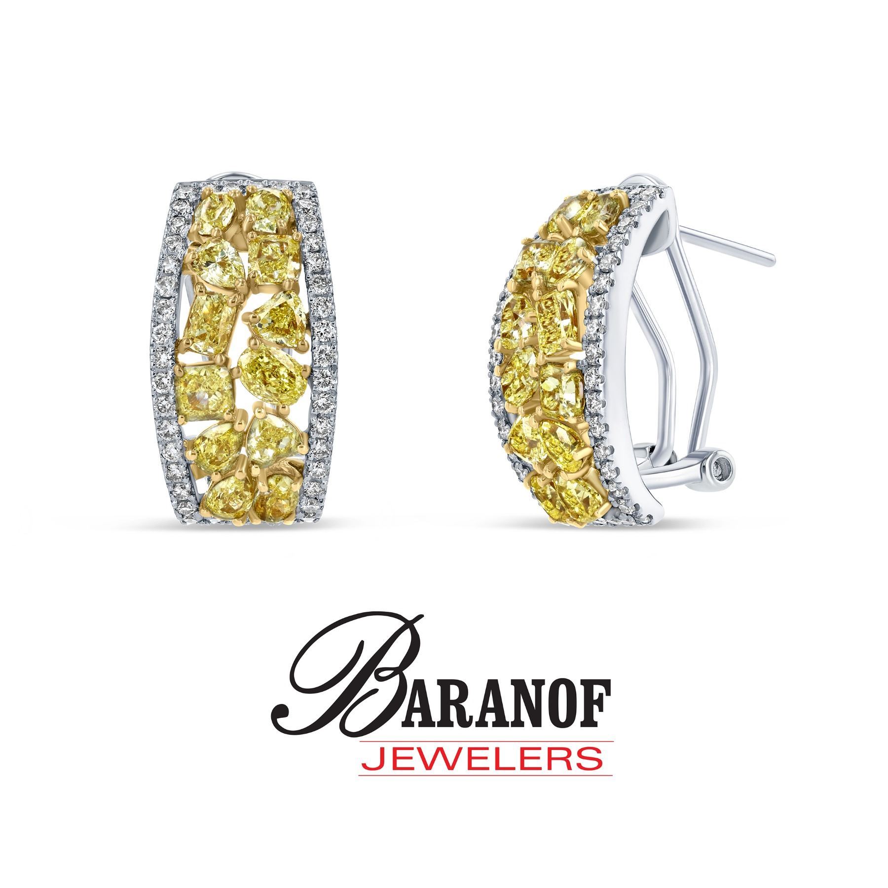 DONATION: Natural fancy yellow diamonds and white diamond earrings set in 18 karat white gold, set with 3.25 carats of fancy yellow diamonds, 0.70 carats of white diamonds, clarity is Vs2.