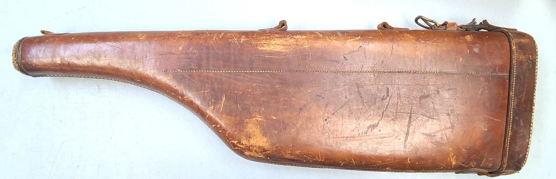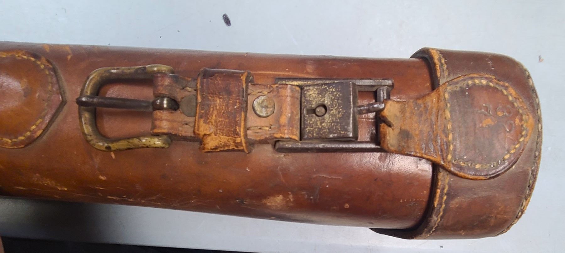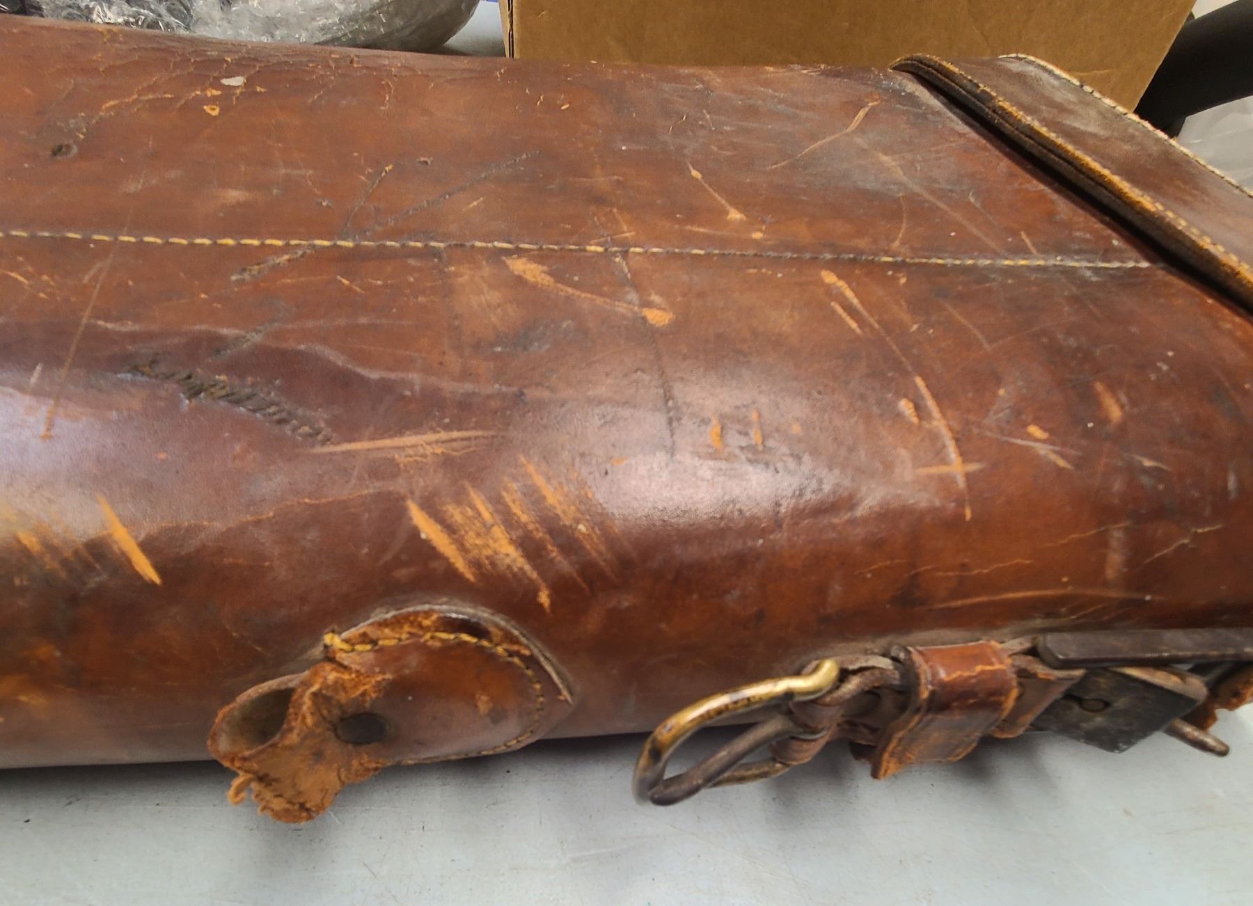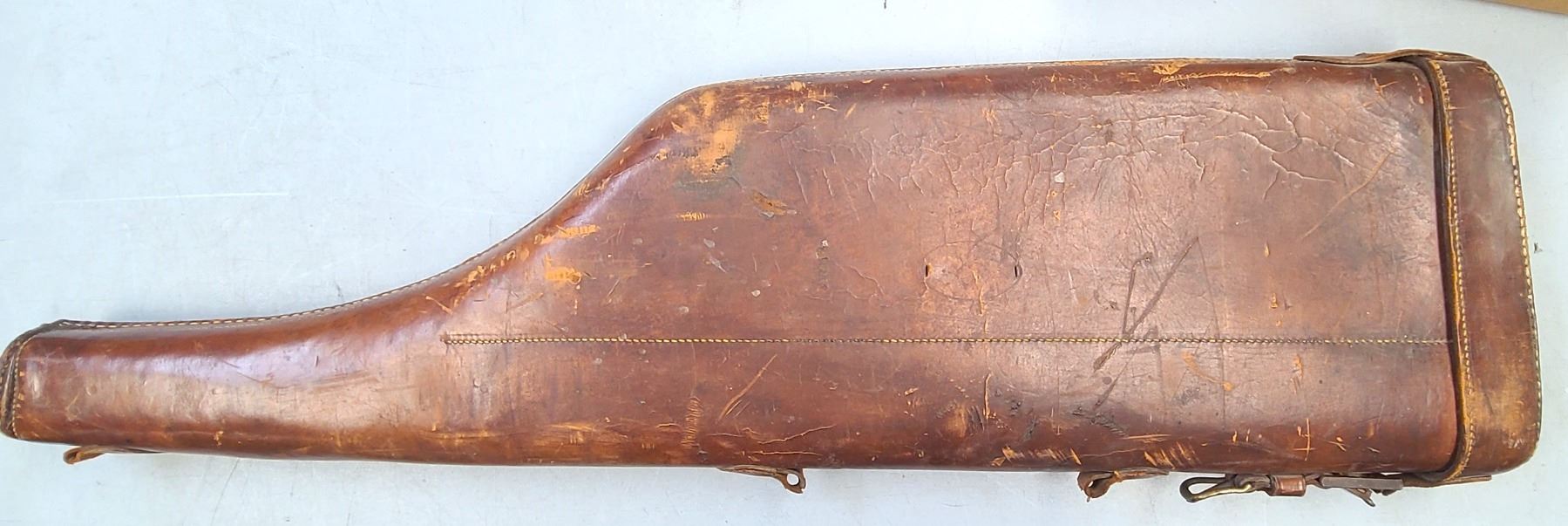 Lot 291 Vintage 10 ga Leg of Mutton Leather Shotgun Case + BGI 1892 Wood Cleaning Rod