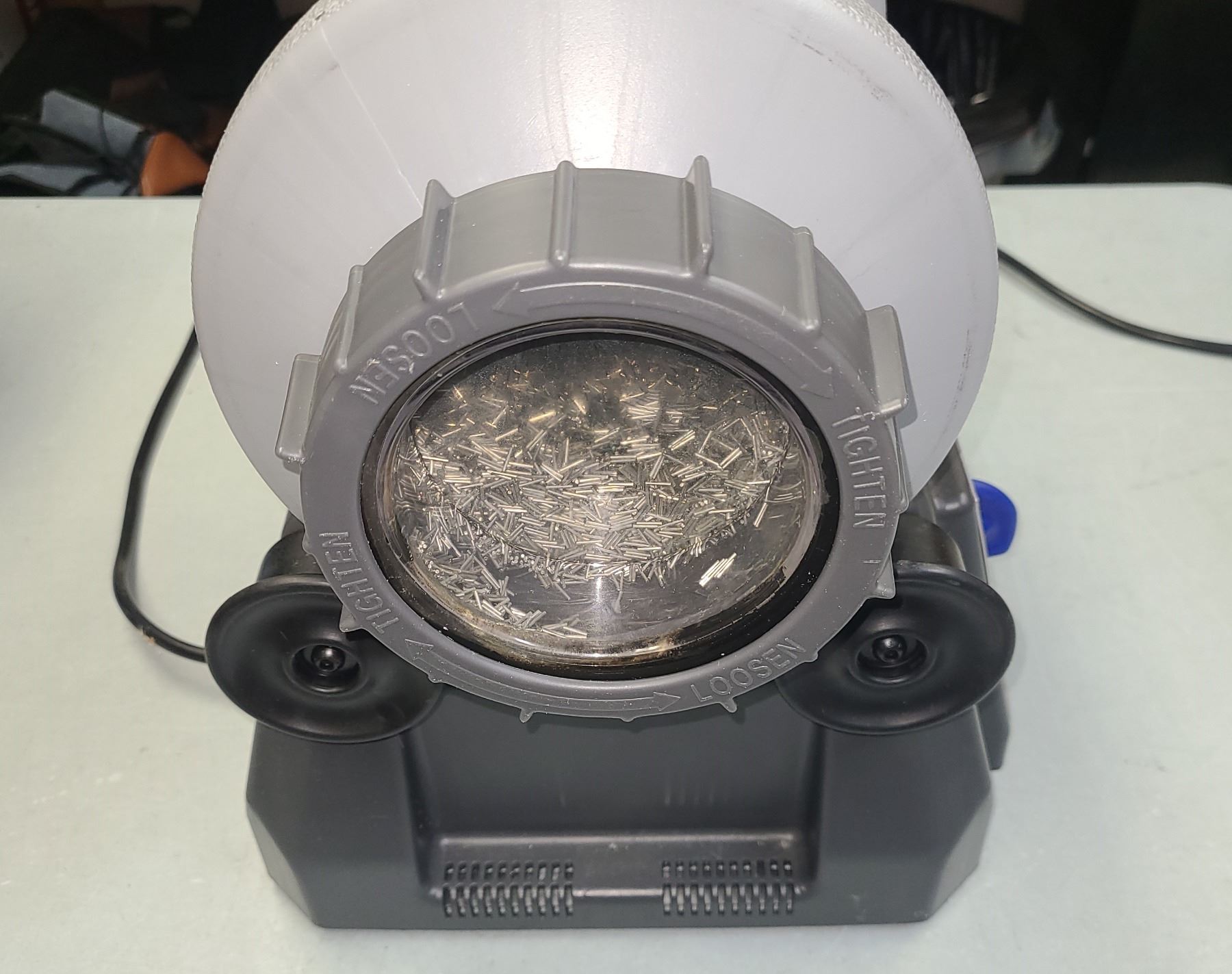 The tumbler can effectively clean without the use of stainless media pins with a