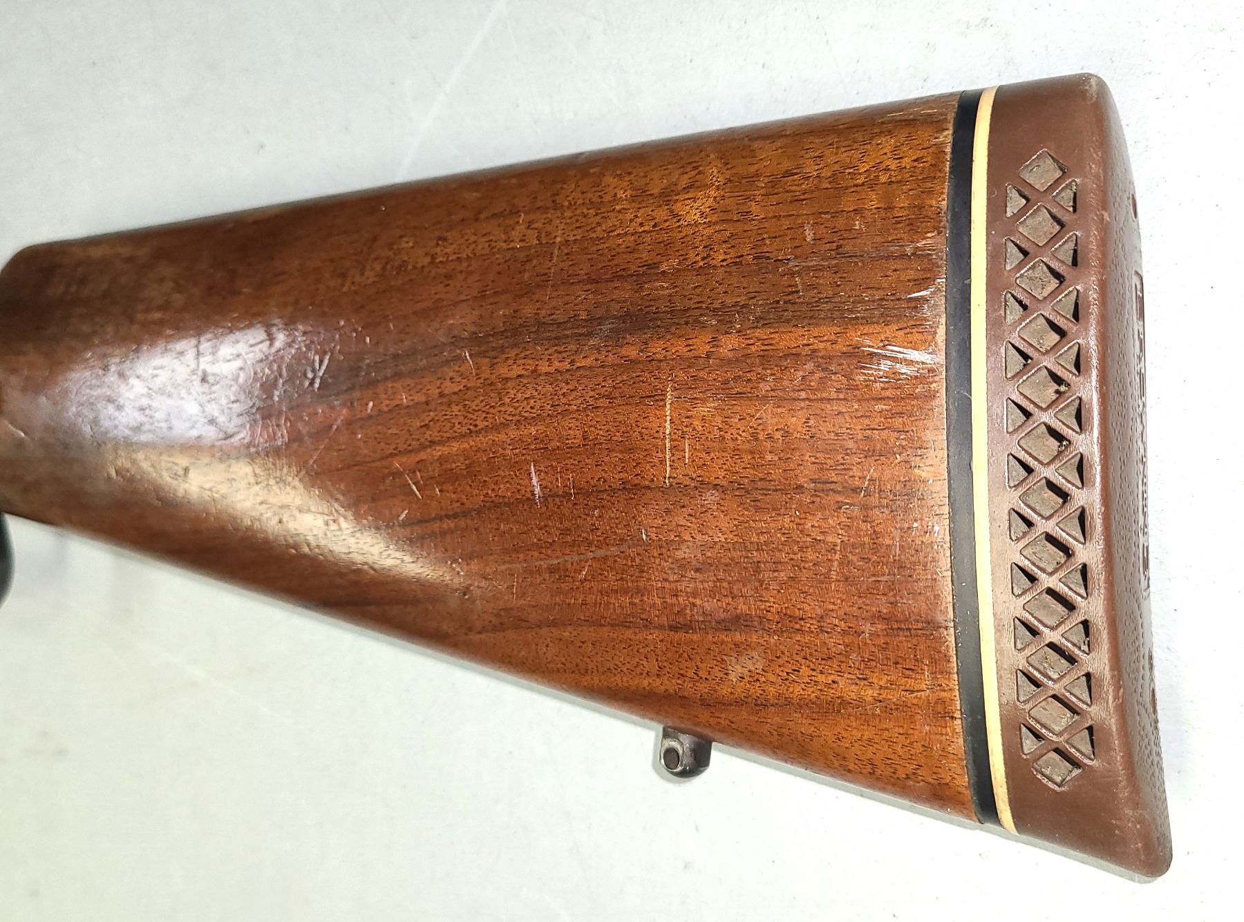 caliber and featured a checkered Walnut pistol grip stock with a factory installed