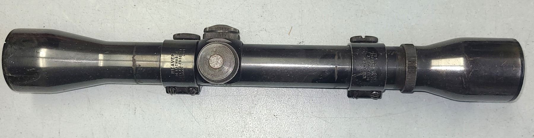 4 Power Weaver 1" rifle scope. It is a gloss finished K4-F model with a Duplex